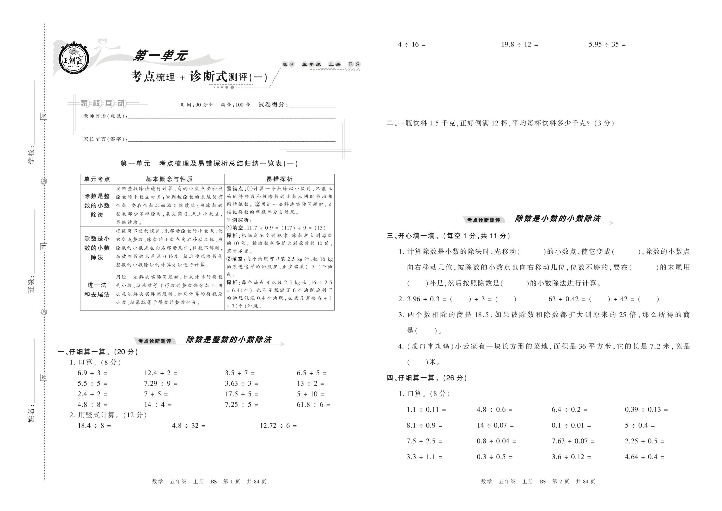 五年级数学北师版上册单元卷