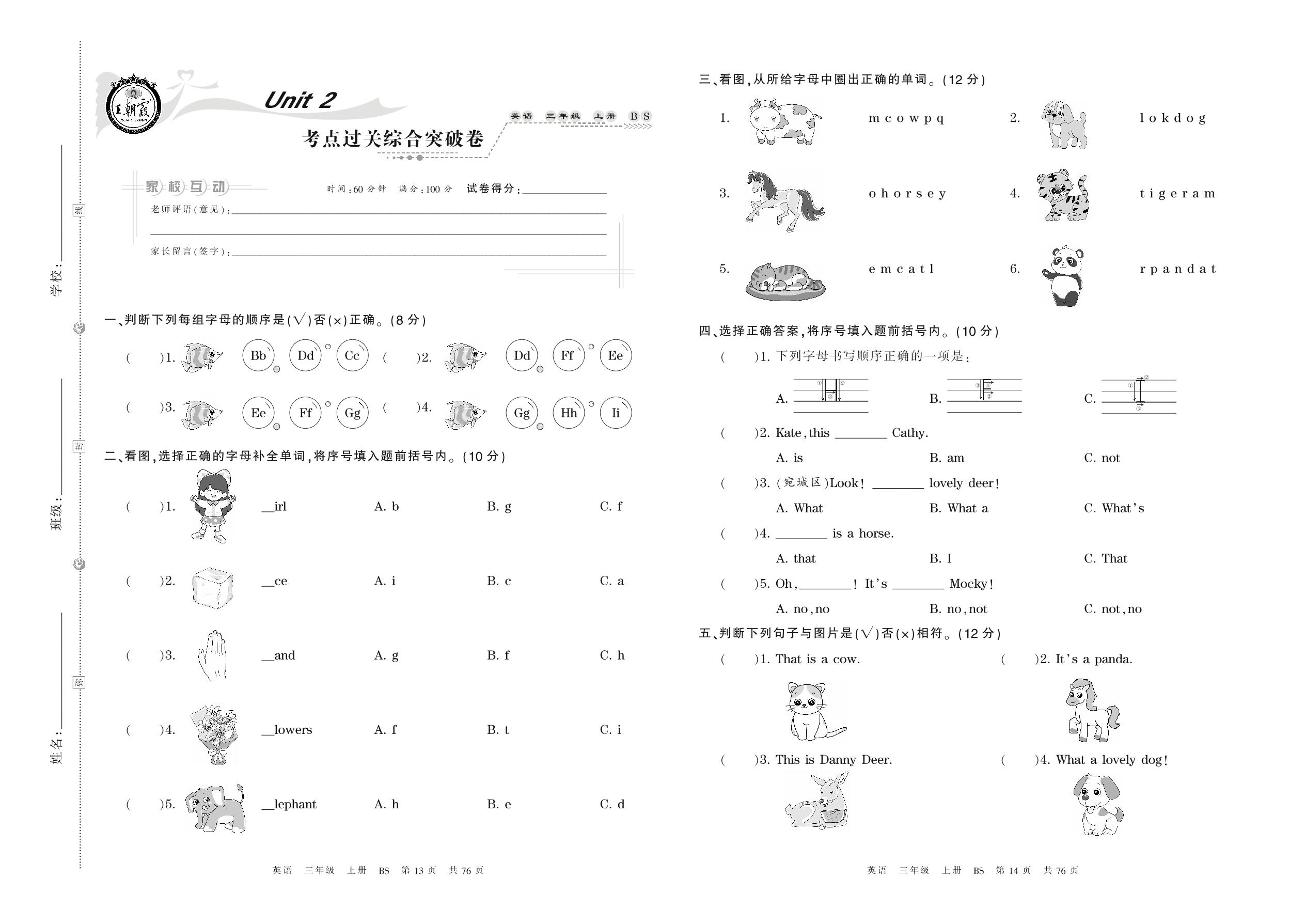 2021上册三年级英语北师版 Unit 2 考点过关综合突破卷