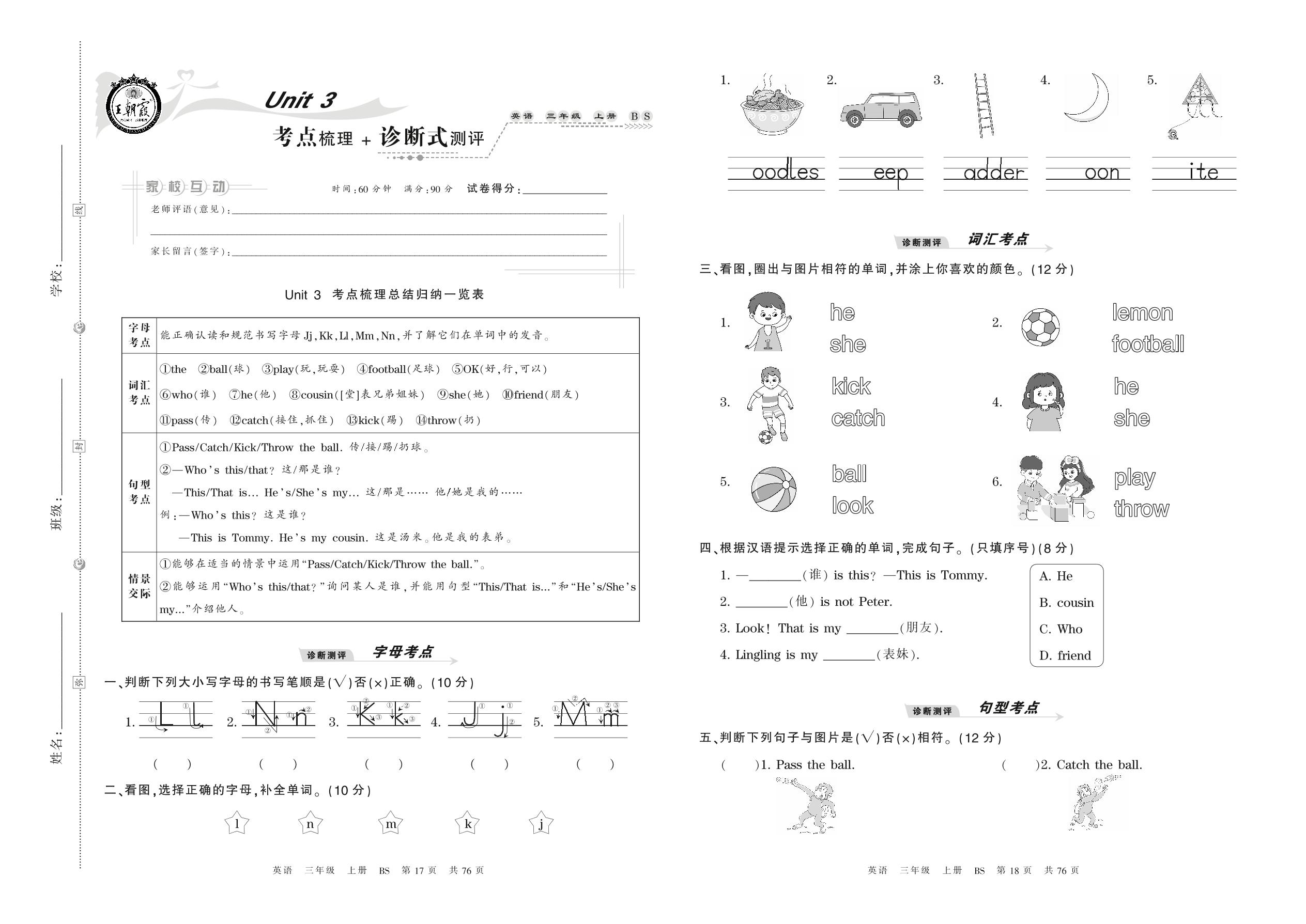 2021上册三年级英语北师版 Unit 3 考点梳理 + 诊断式测评