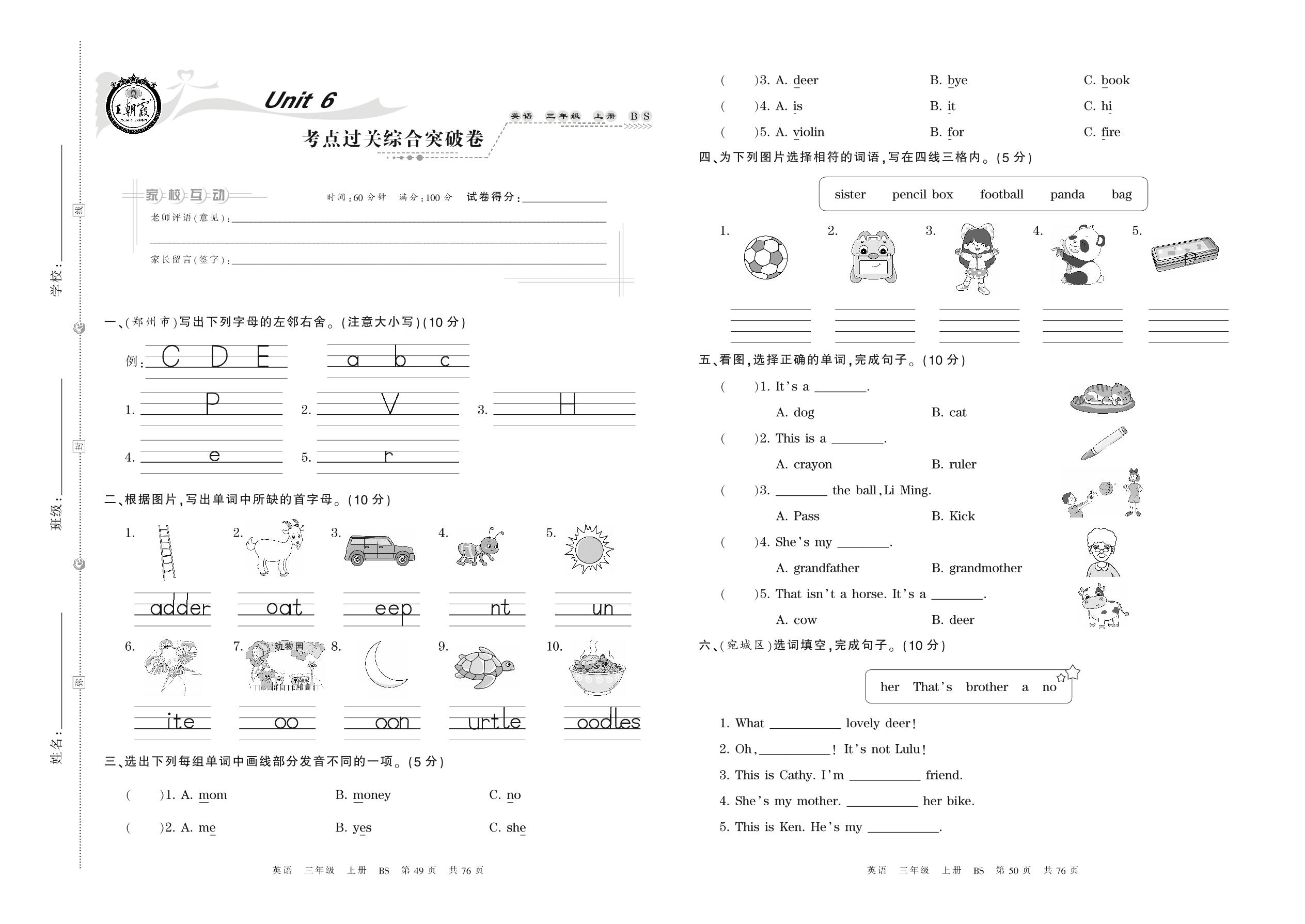 三年级英语北师版上册单元卷