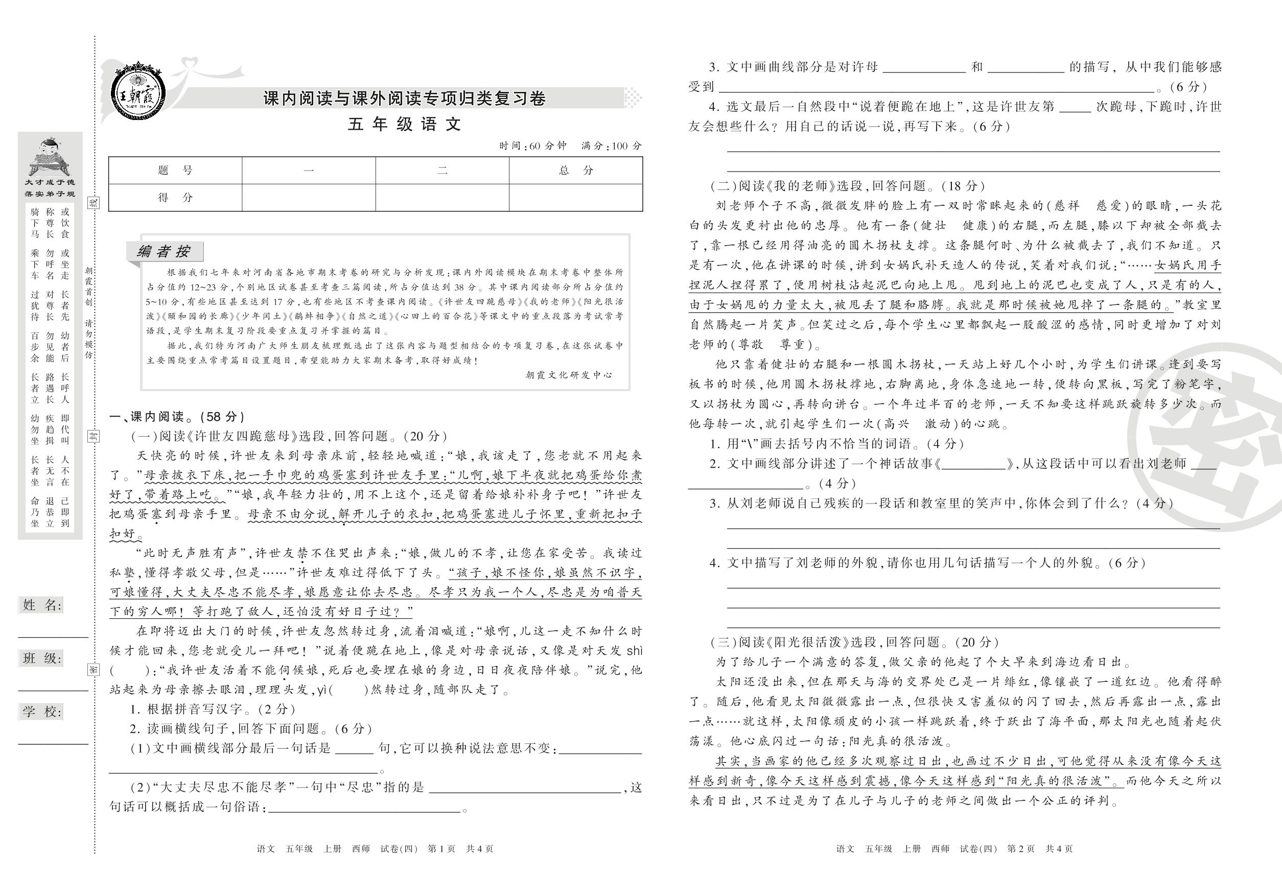 王朝霞期末专项卷五年级上册语文(西师版)_R210801221349【4】