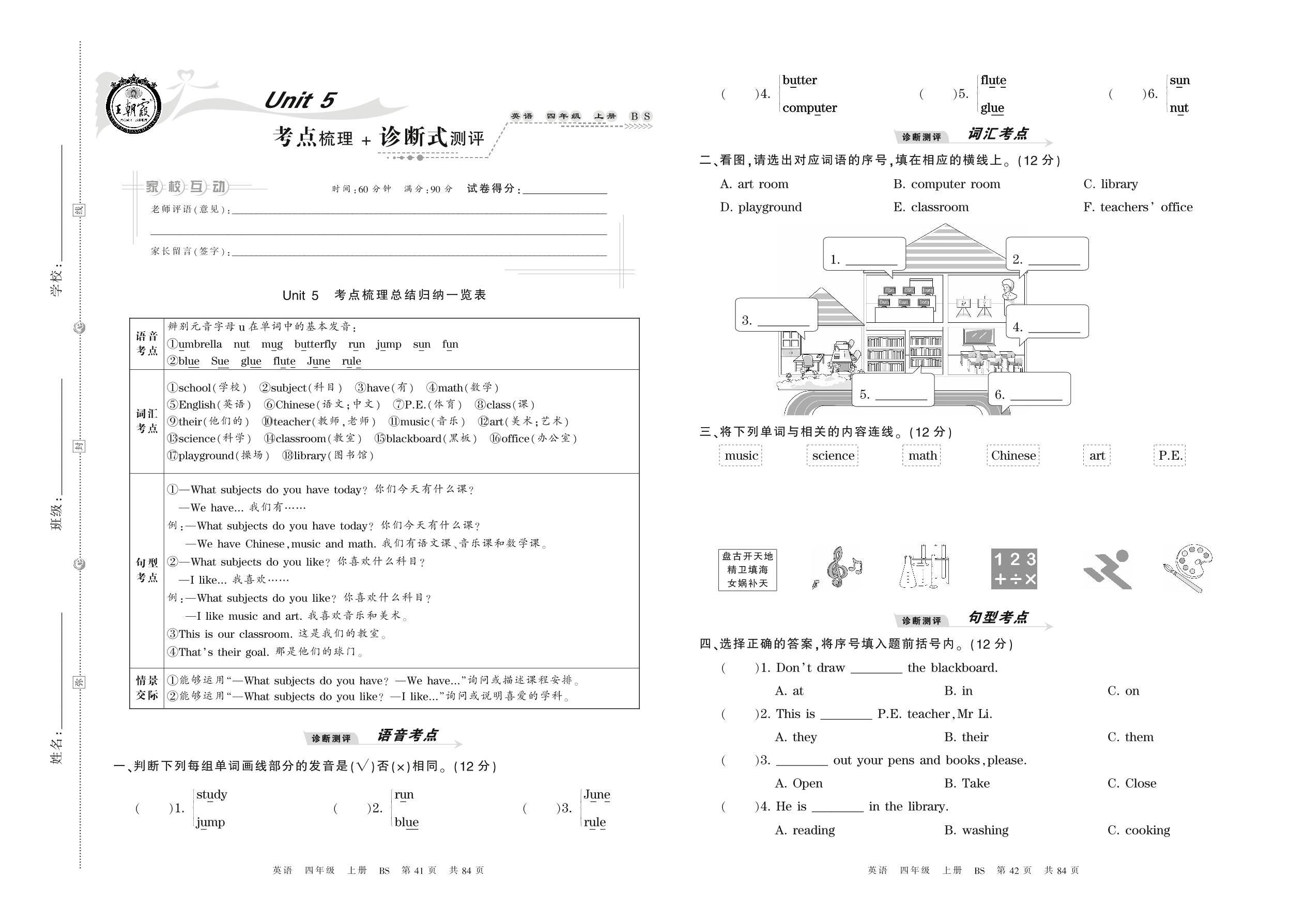 2021上册四年级英语北师版 Unit 5 考点梳理 + 诊断式测评