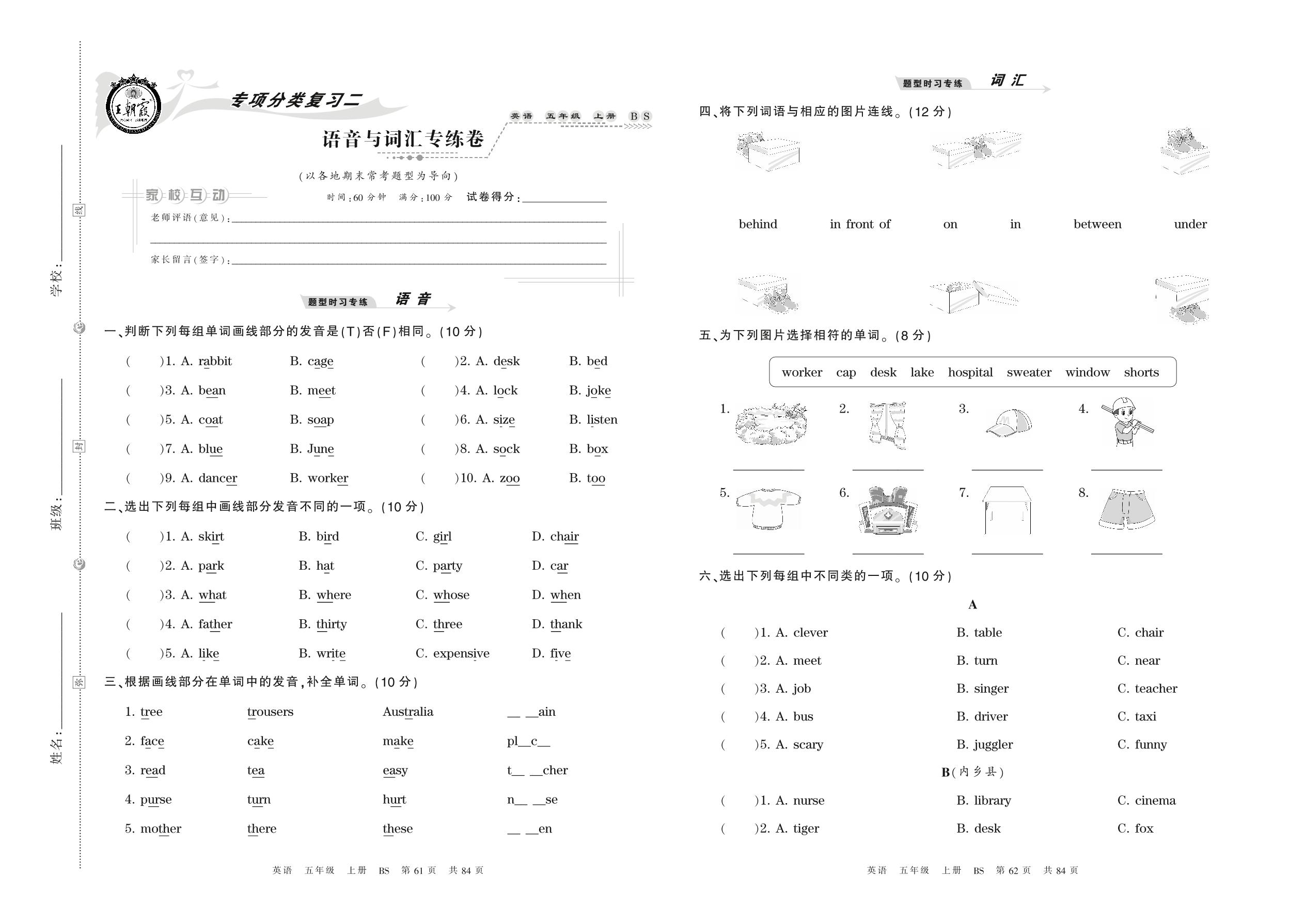 2021上册五年级英语北师版 语音与词汇专练卷