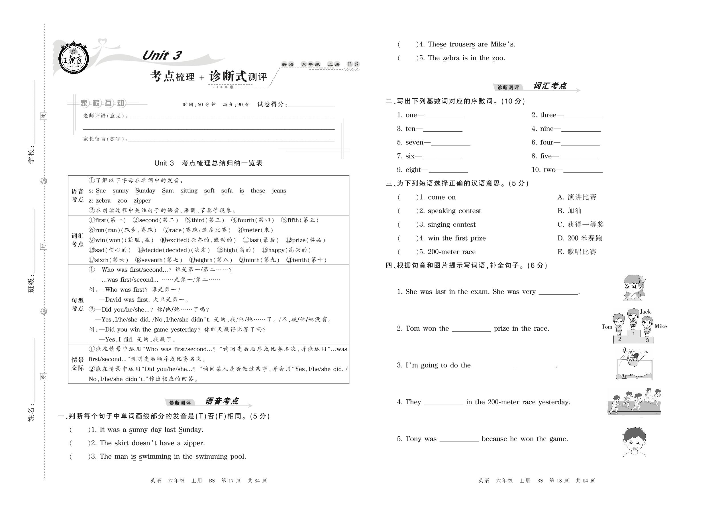 2021上册六年级英语北师版 Unit 3 考点梳理 + 诊断式测评