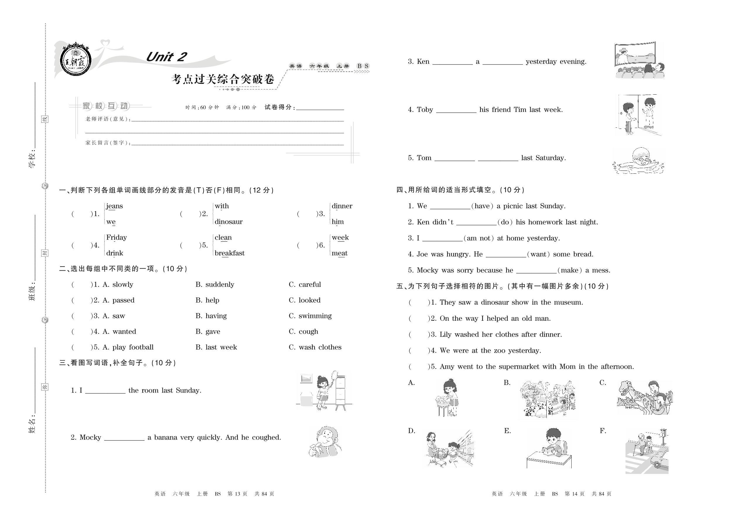 2021上册六年级英语北师版 Unit 2 考点过关综合突破卷