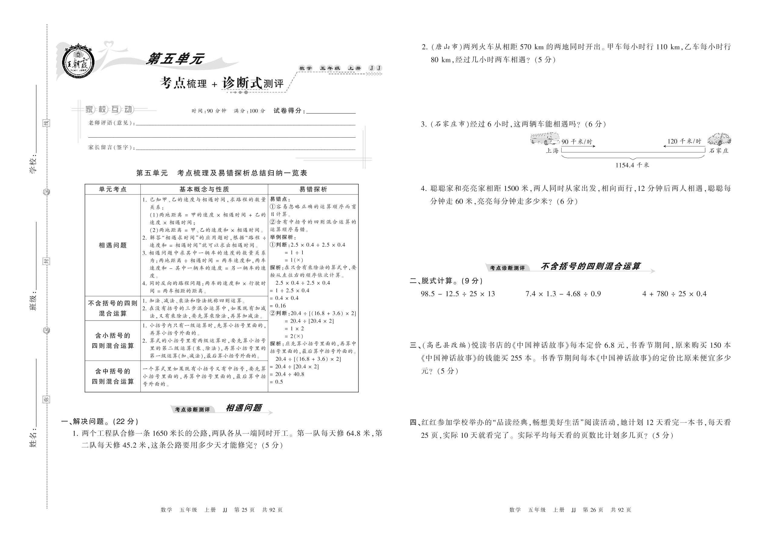 2021上册五年级数学冀教版 第五单元 考点梳理+诊断式测评