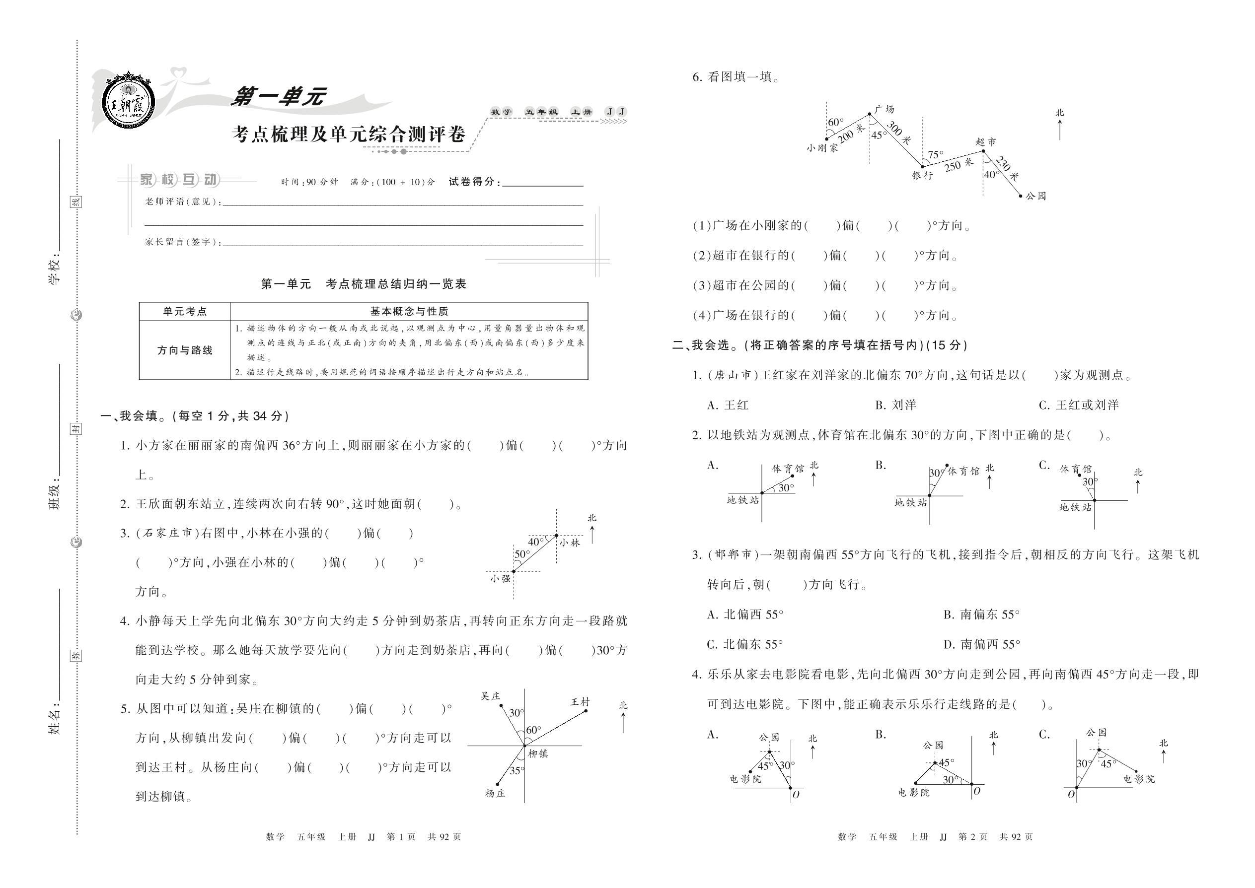 2021上册五年级数学冀教版 第一单元 考点梳理及单元综合测评卷