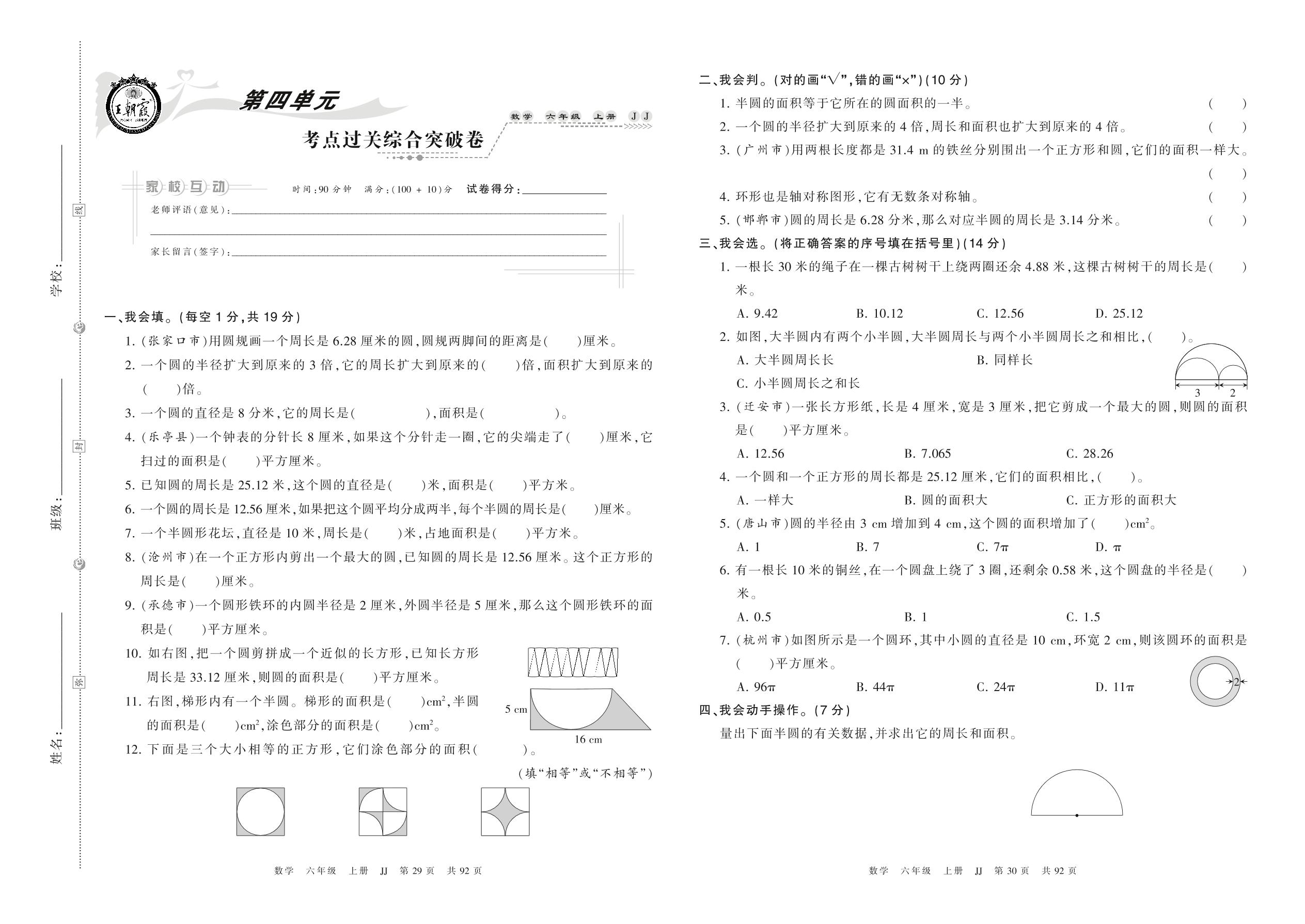 2021上册六年级数学冀教版 第四单元 考点过关综合突破卷