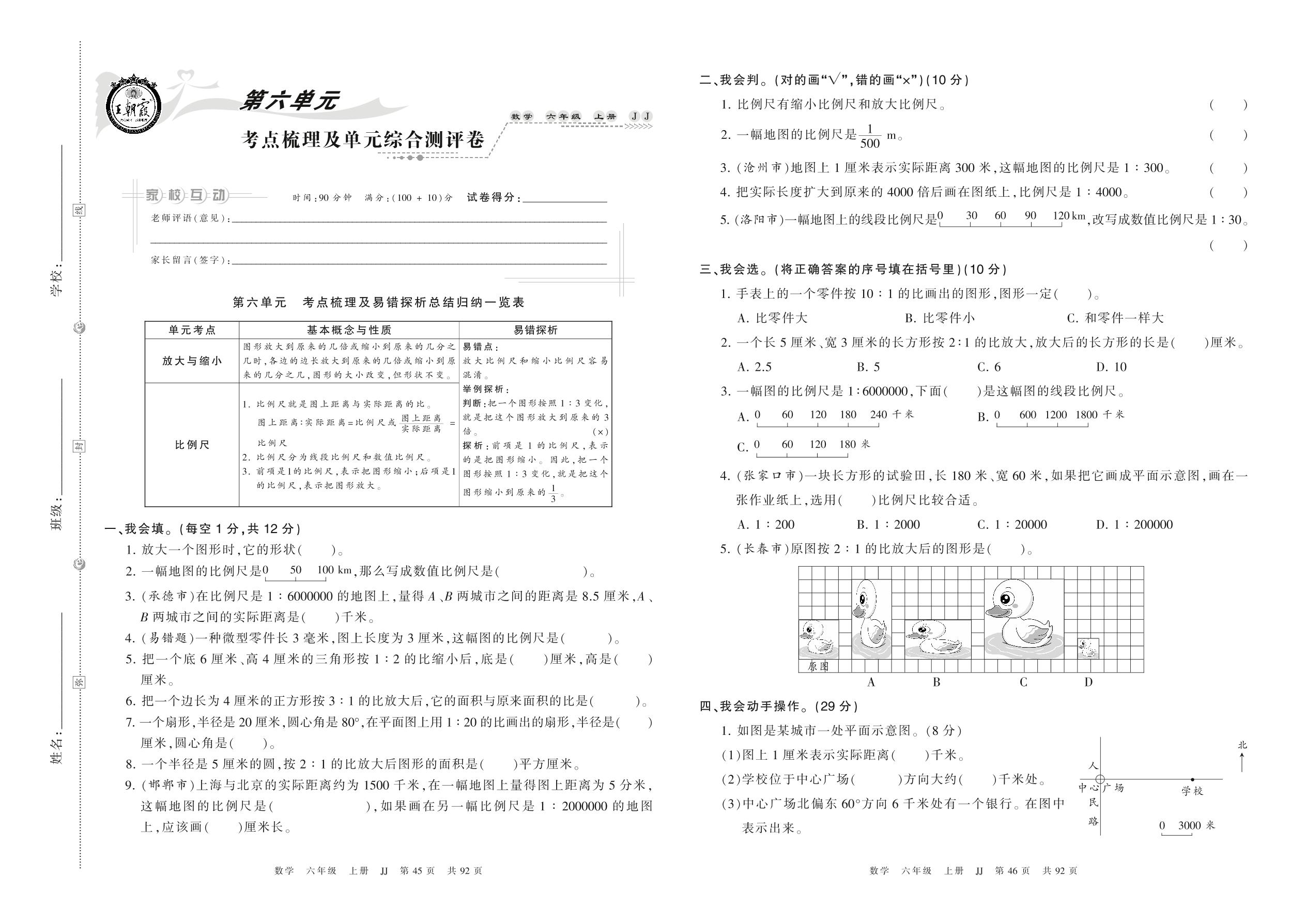 2021上册六年级数学冀教版 第六单元 考点梳理及单元综合测评卷
