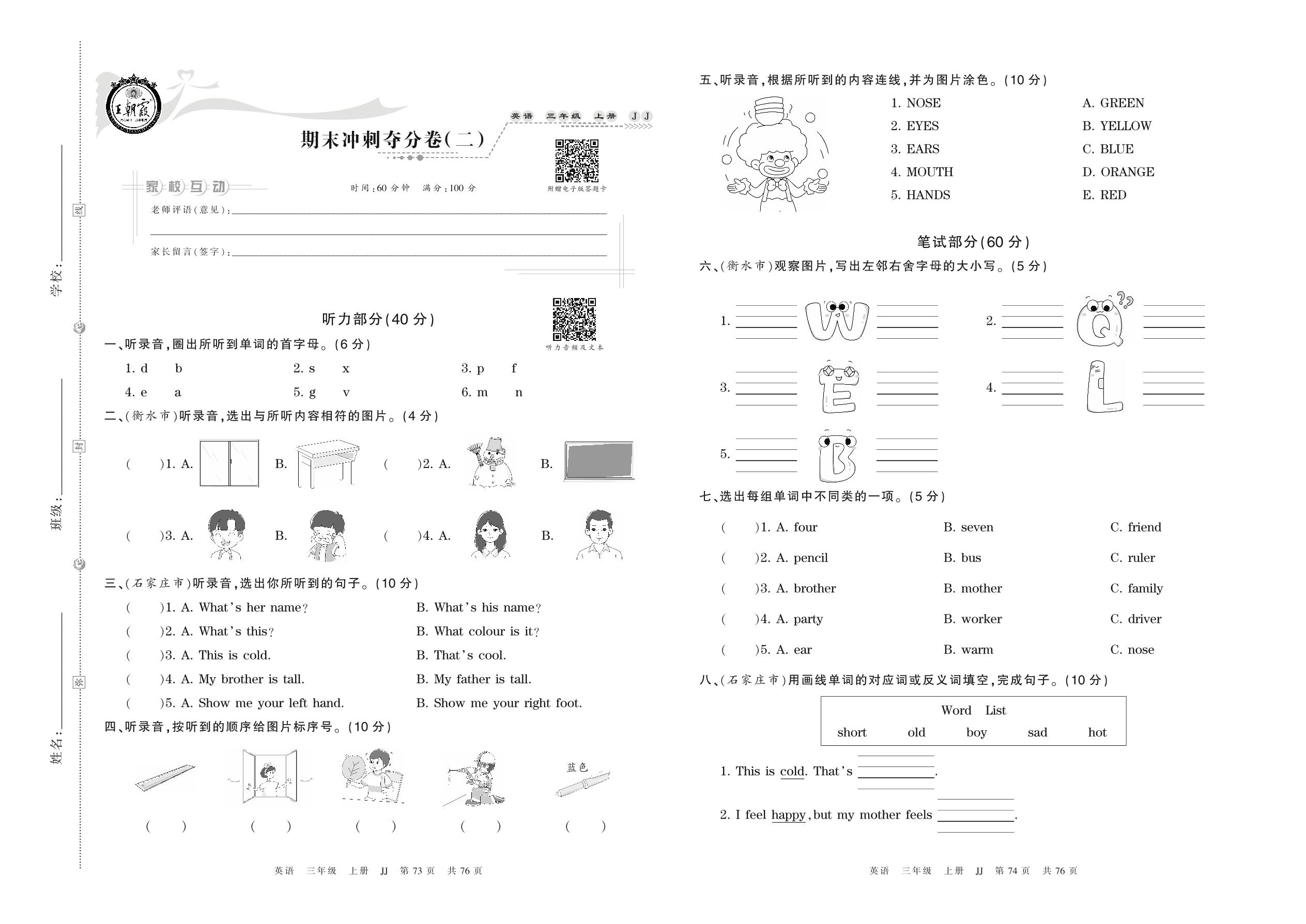 2021上册三年级英语冀教版 期末冲刺夺分卷(二)