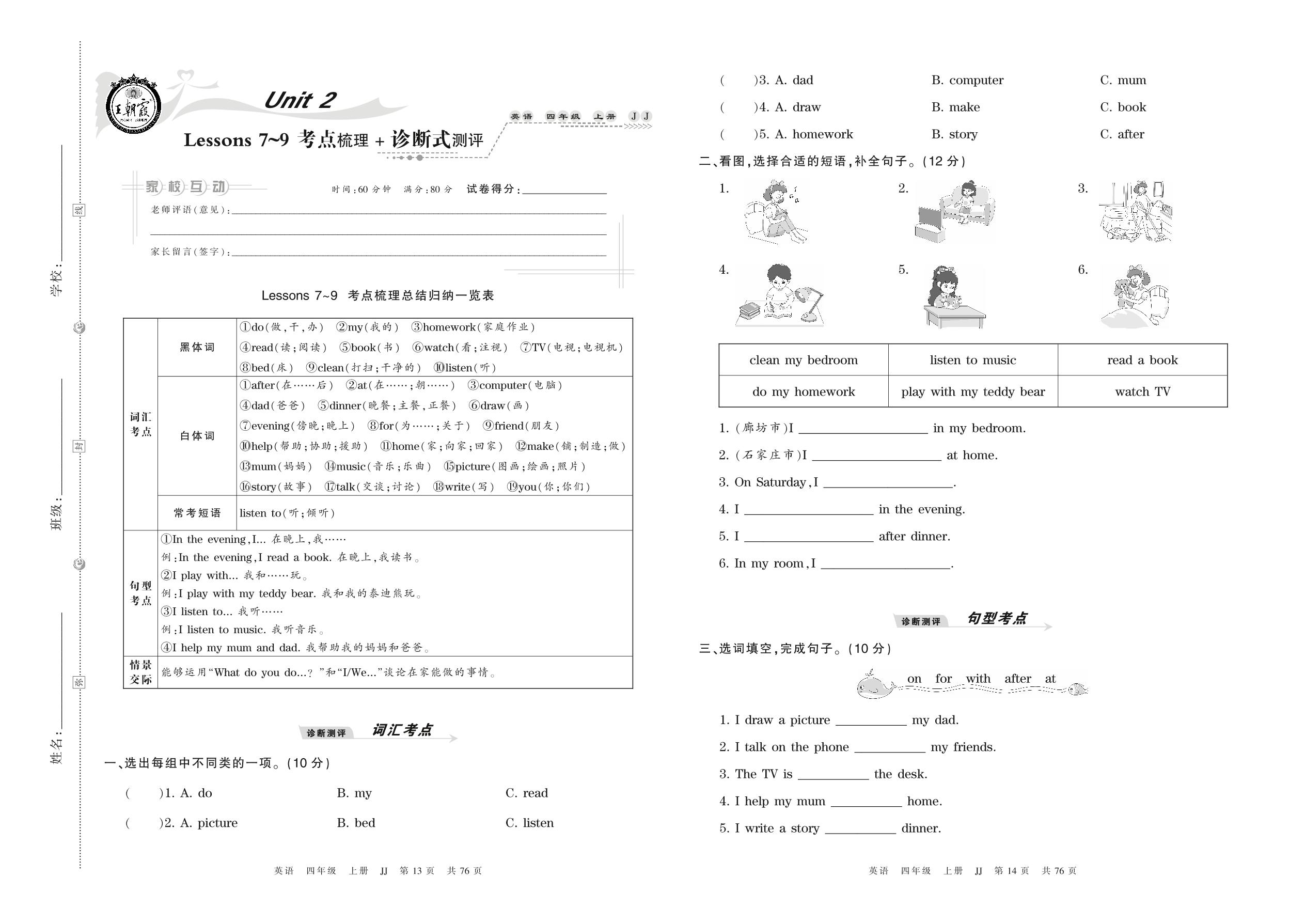 2021上册四年级英语冀教版 Unit 2 Lessons 7~9 考点梳理 + 诊断式测评