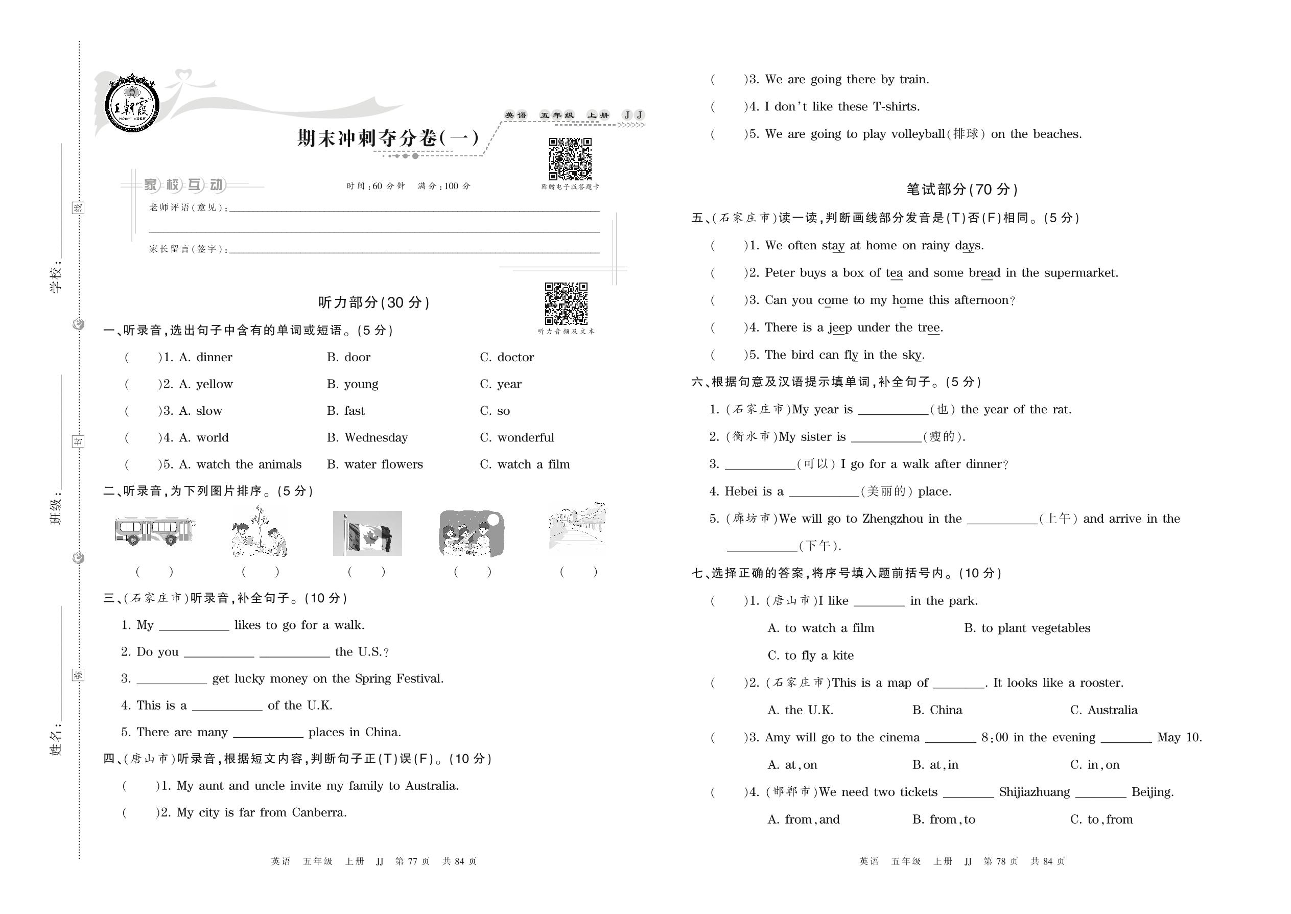 2021上册五年级英语冀教版 期末冲刺夺分卷(一)