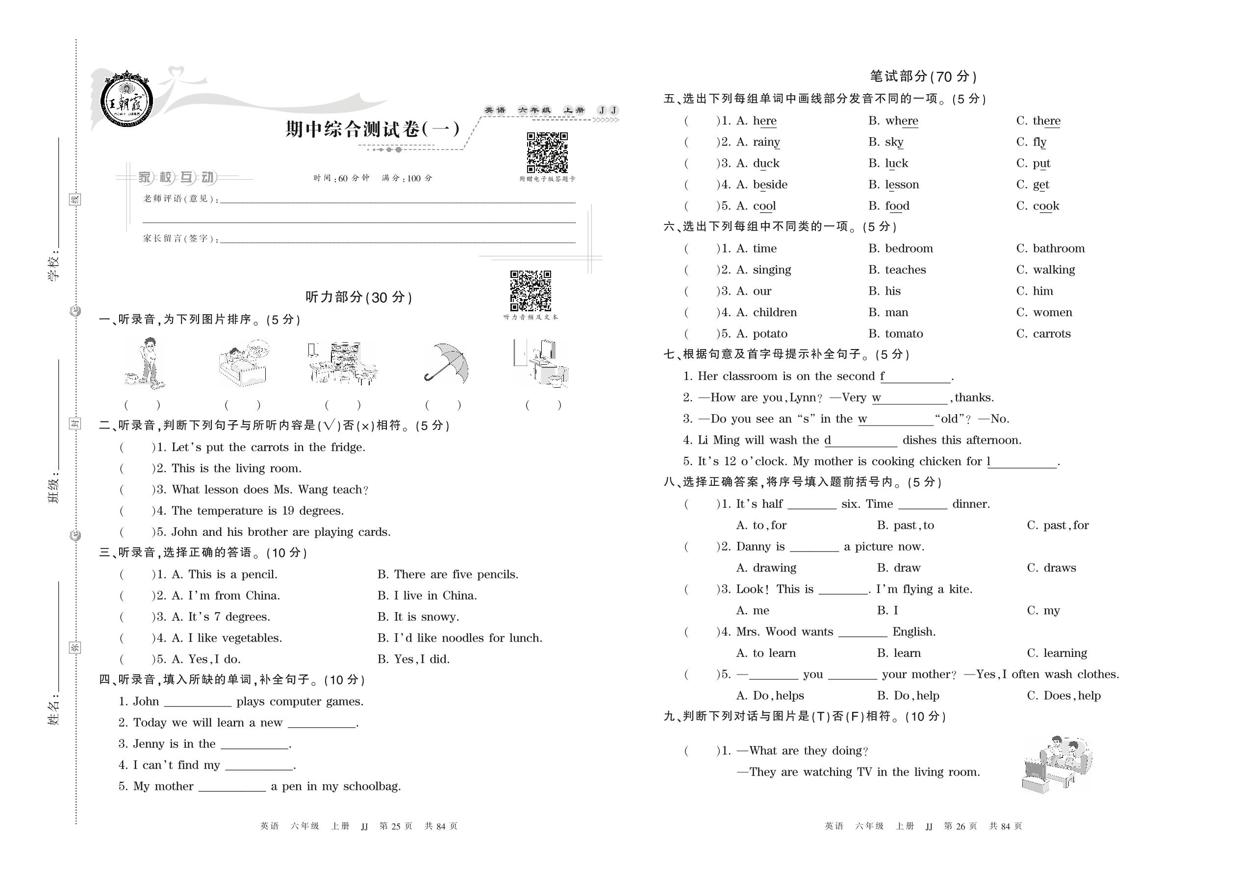 2021上册六年级英语冀教版 期中综合测试卷(一)