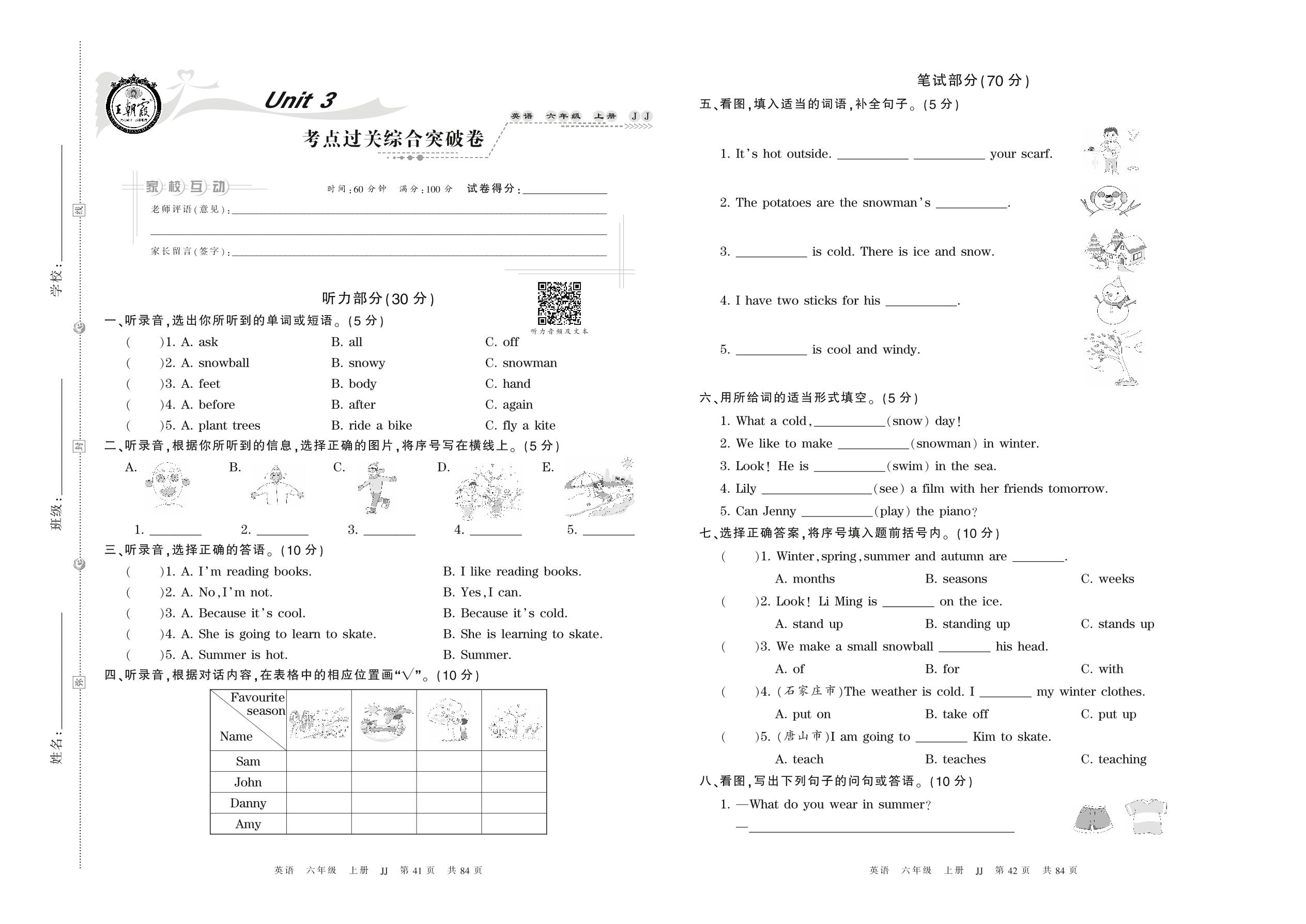 六年级英语冀教版上册单元卷