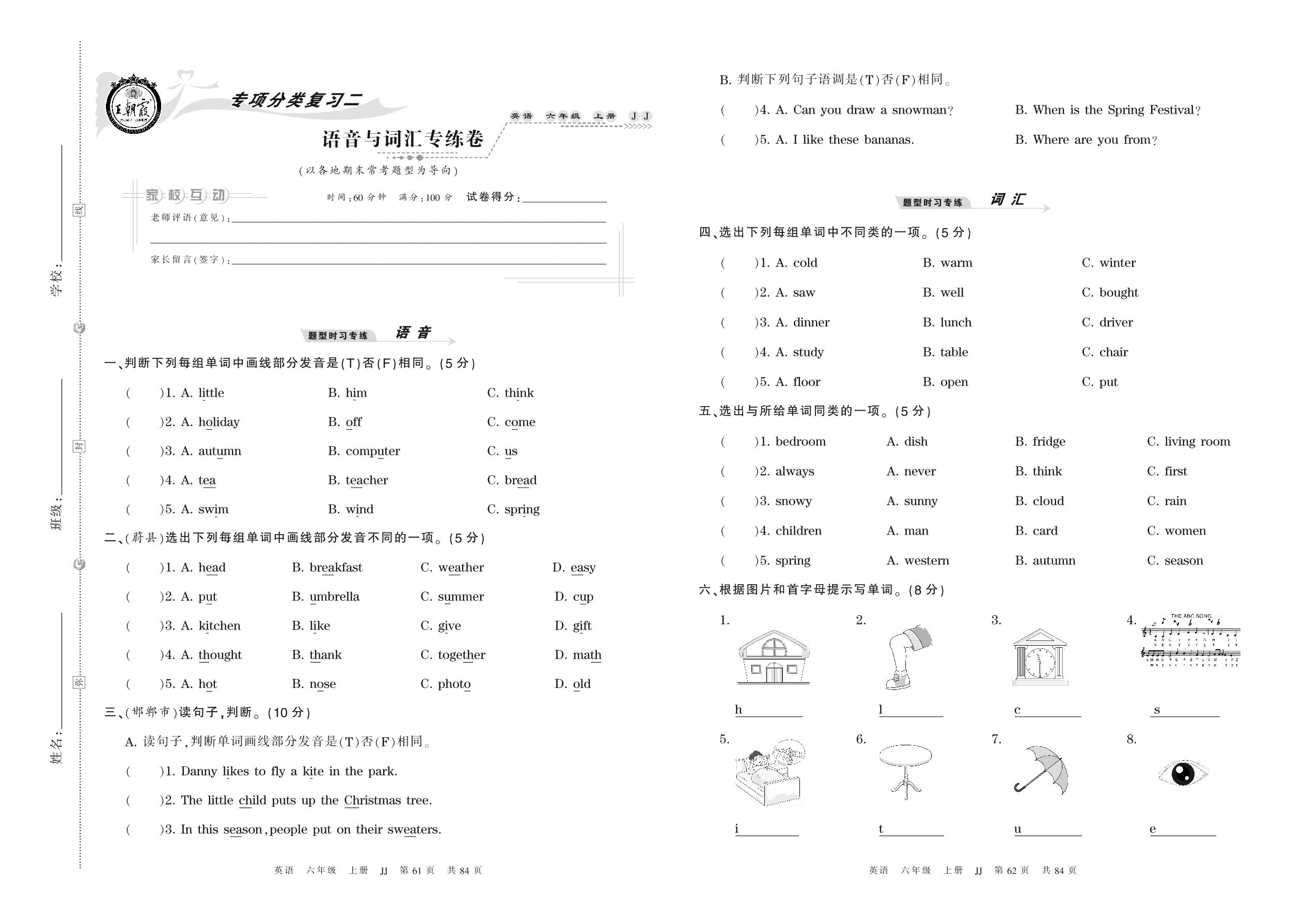 2021上册六年级英语冀教版 语音与词汇专练卷