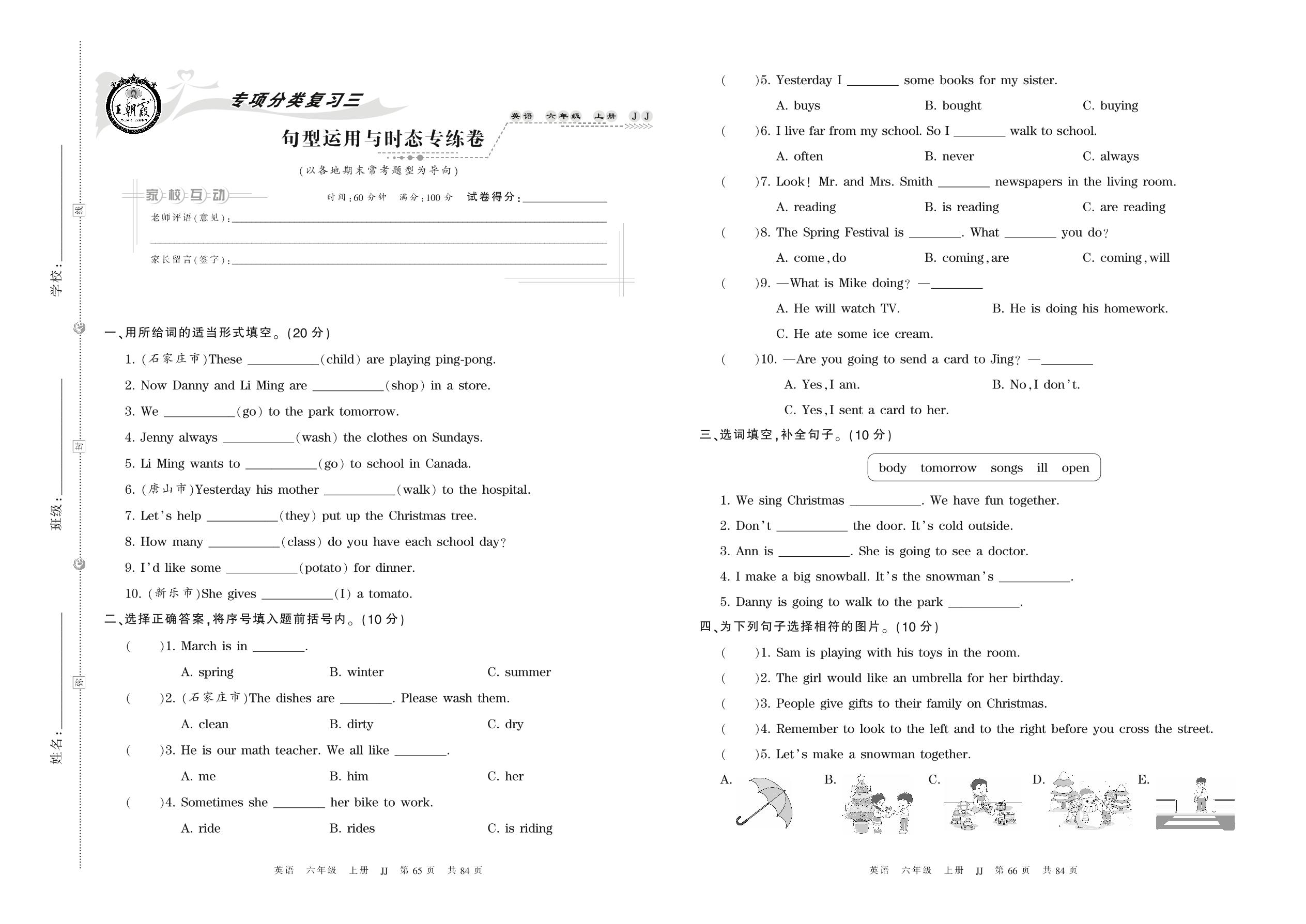 2021上册六年级英语冀教版 句型运用与时态专练卷