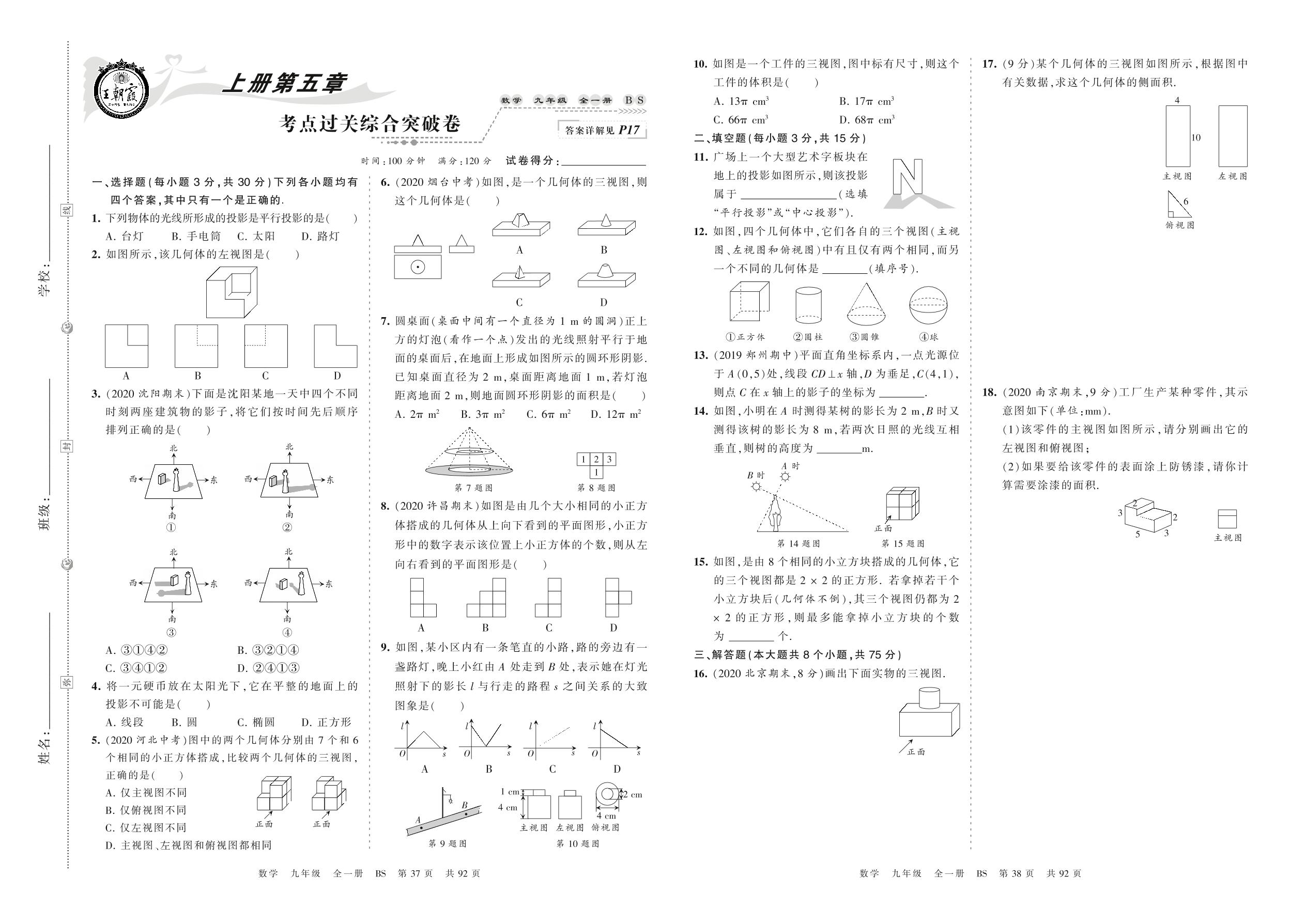 2021秋上册九年级数学北师版 第五章 考点过关综合突破卷
