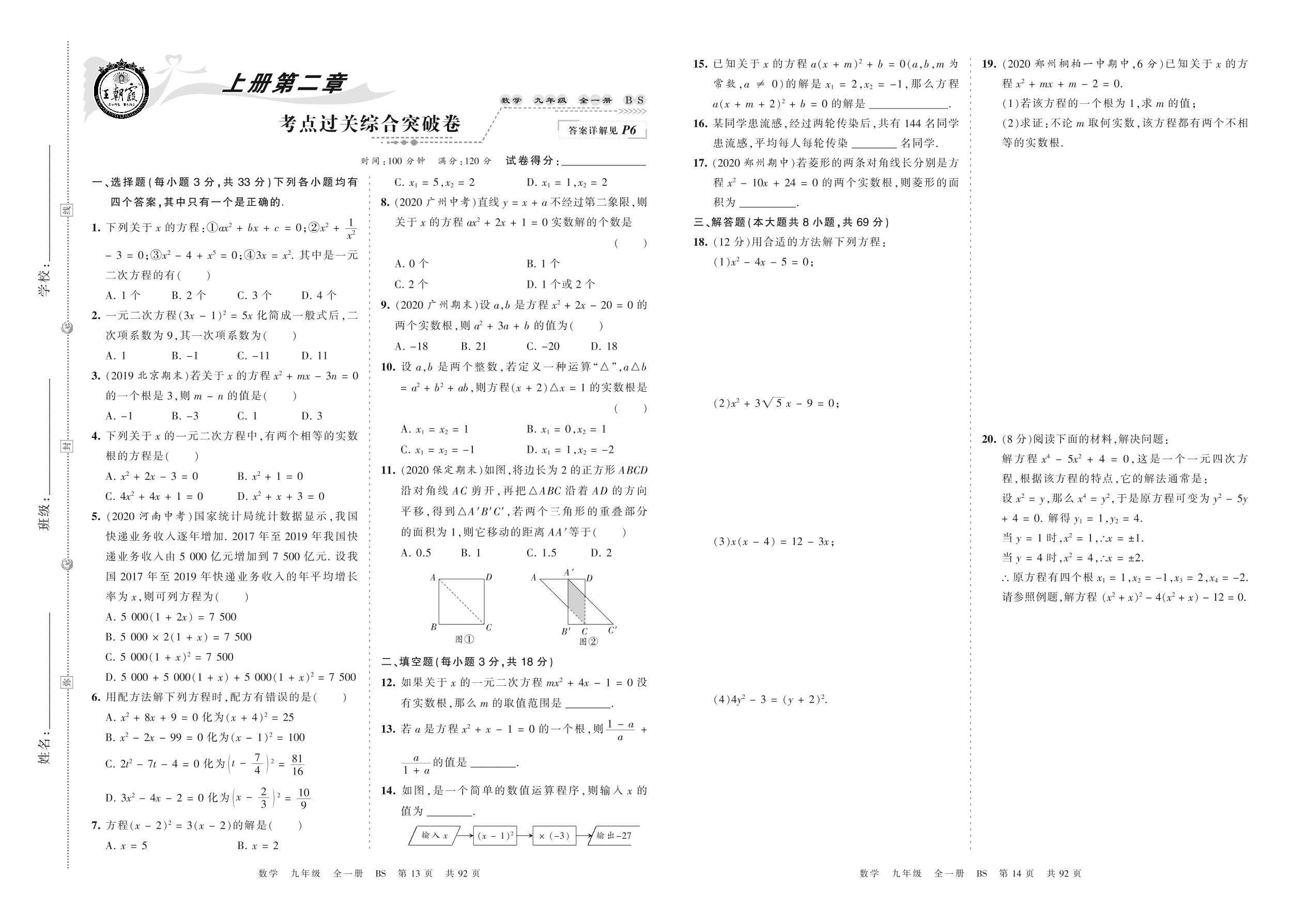 2021秋上册九年级数学北师版 第二章 考点过关综合突破卷