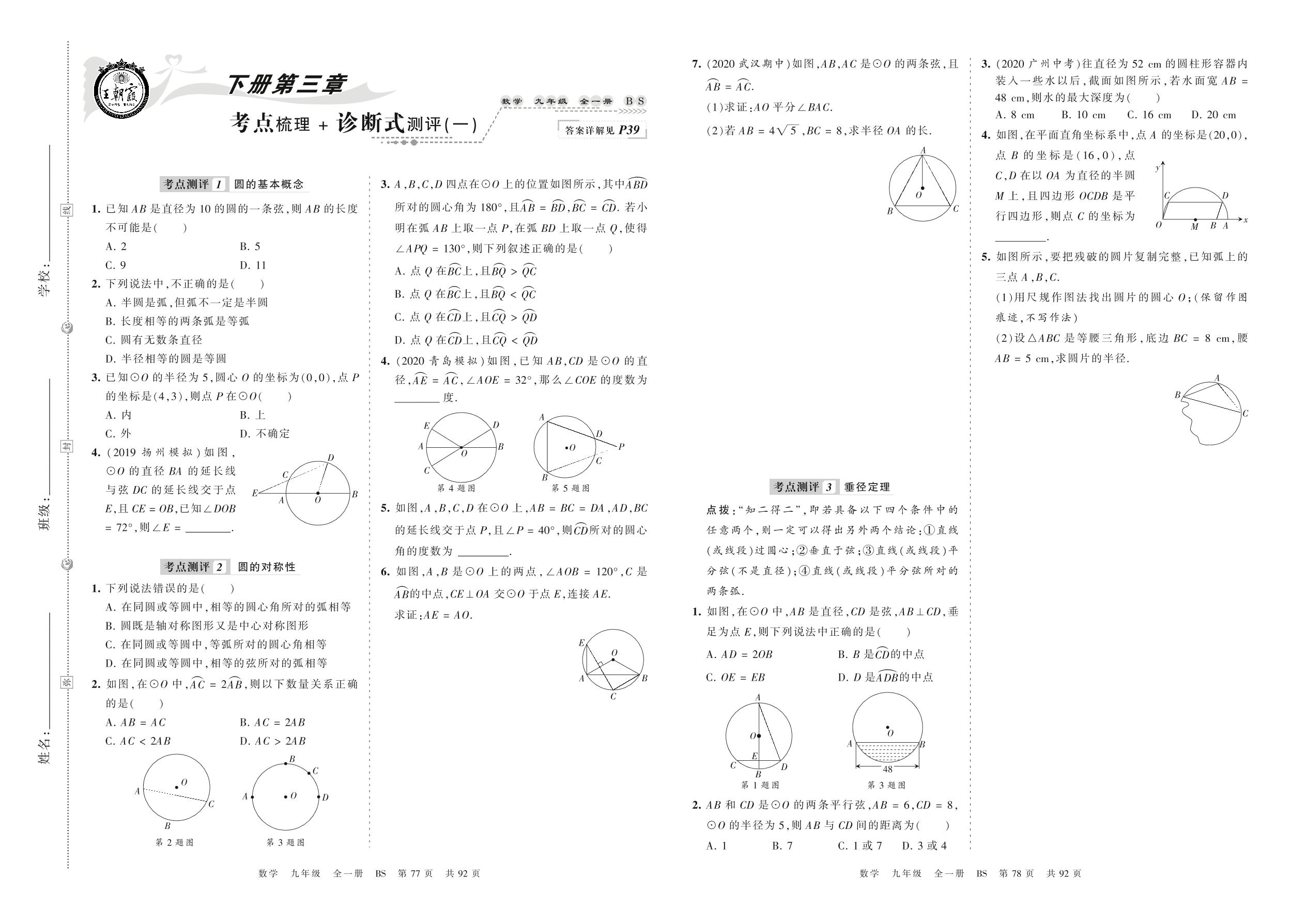 2022春下册九年级数学北师版 第三章 考点梳理 + 诊断式测评(一)