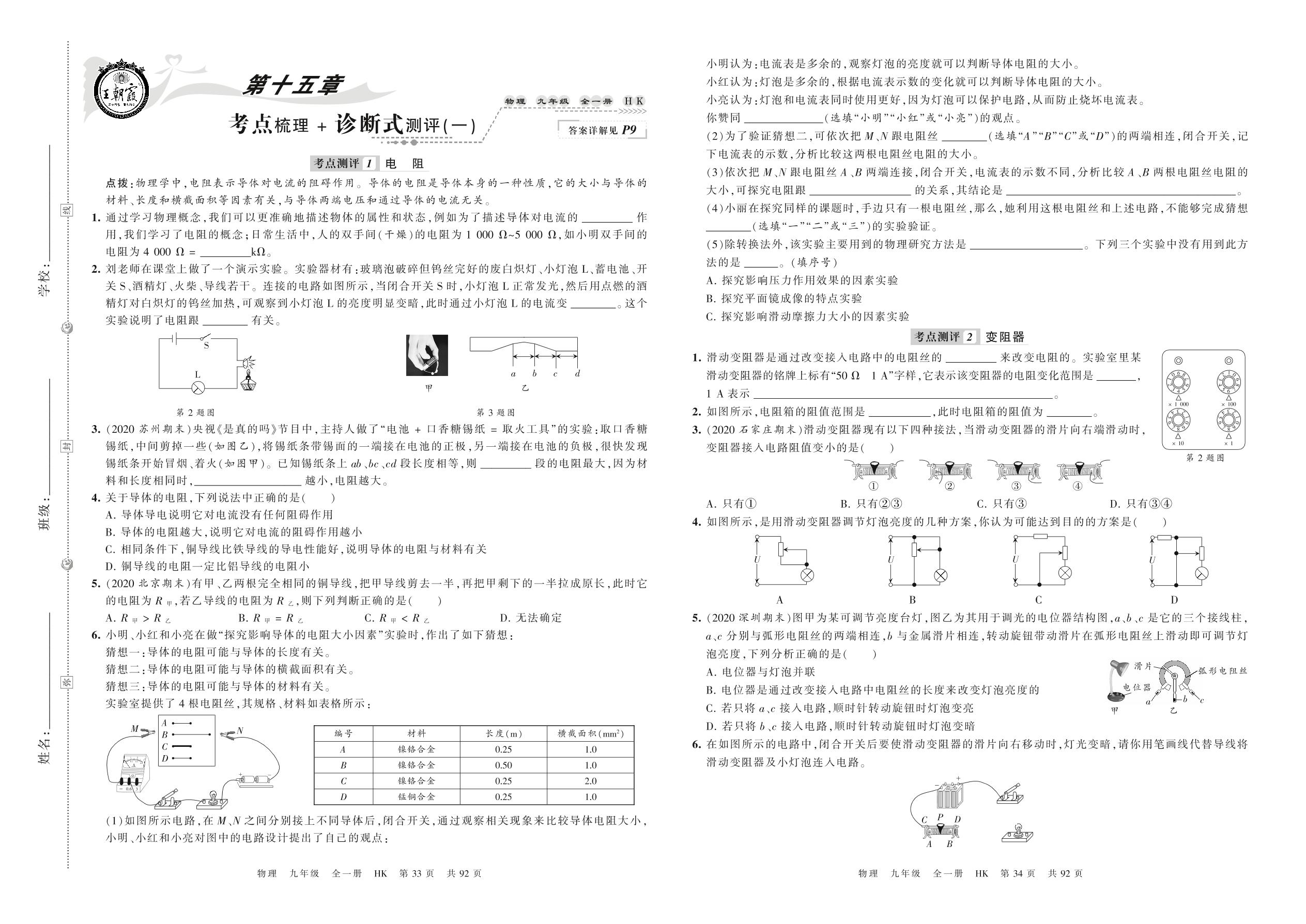 2020-2021学年九年级物理沪科版 第十五章 考点梳理 + 诊断式测评(一)