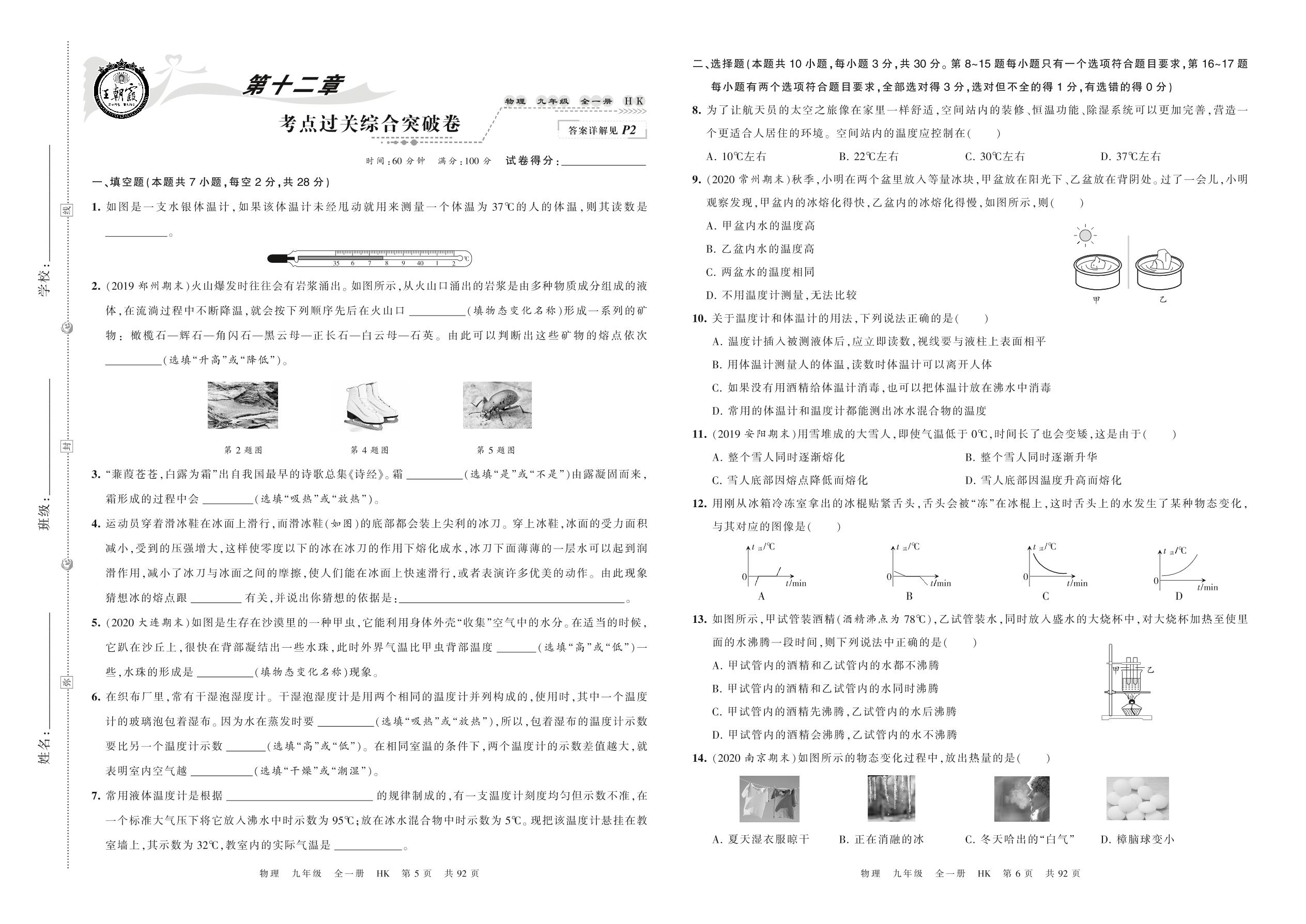 2020-2021学年九年级物理沪科版 第十二章 考点过关综合突破卷