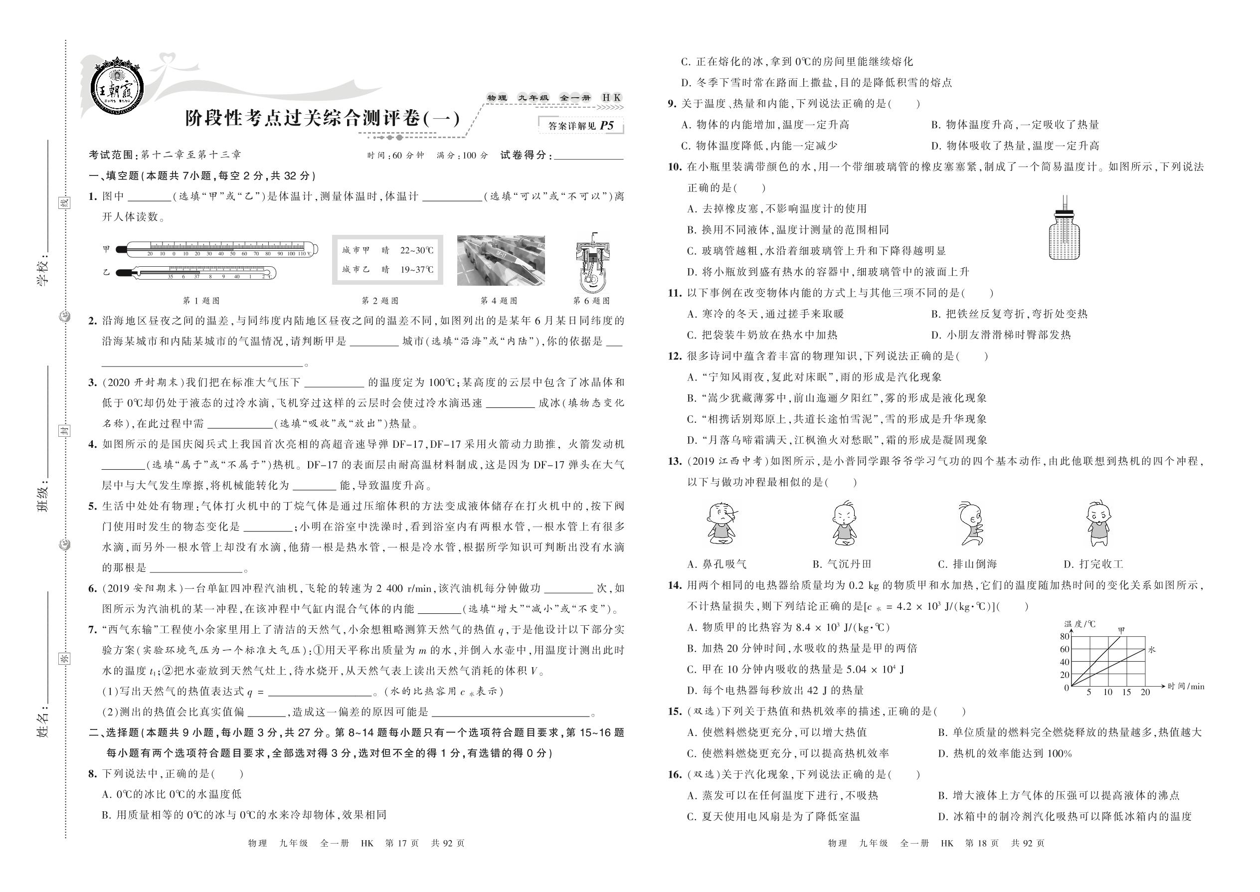 2021-2022学年九年级物理沪科版 阶段性考点过关综合测评卷(一)