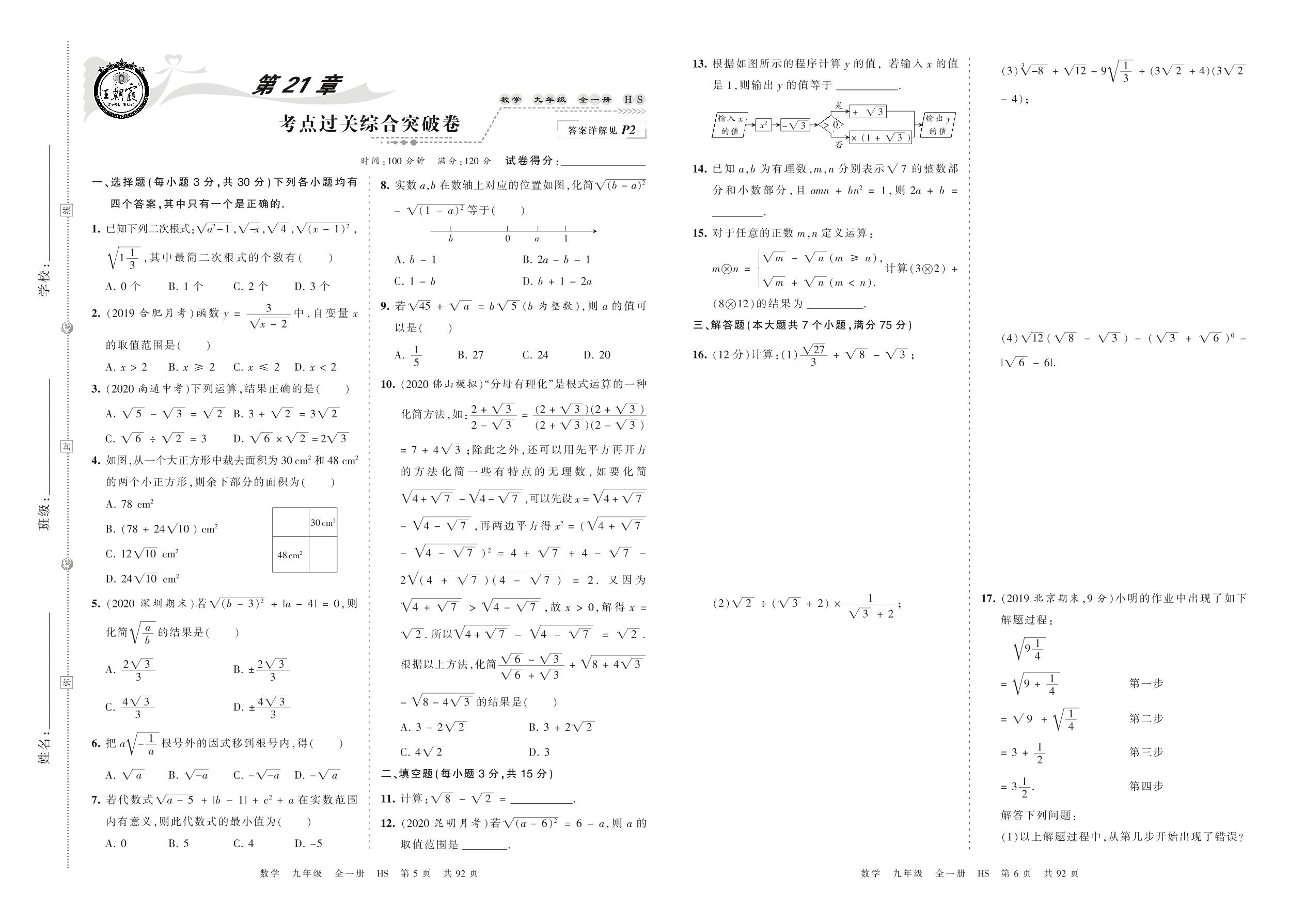 2021上册九年级数学华师版 第21章 考点过关综合突破卷