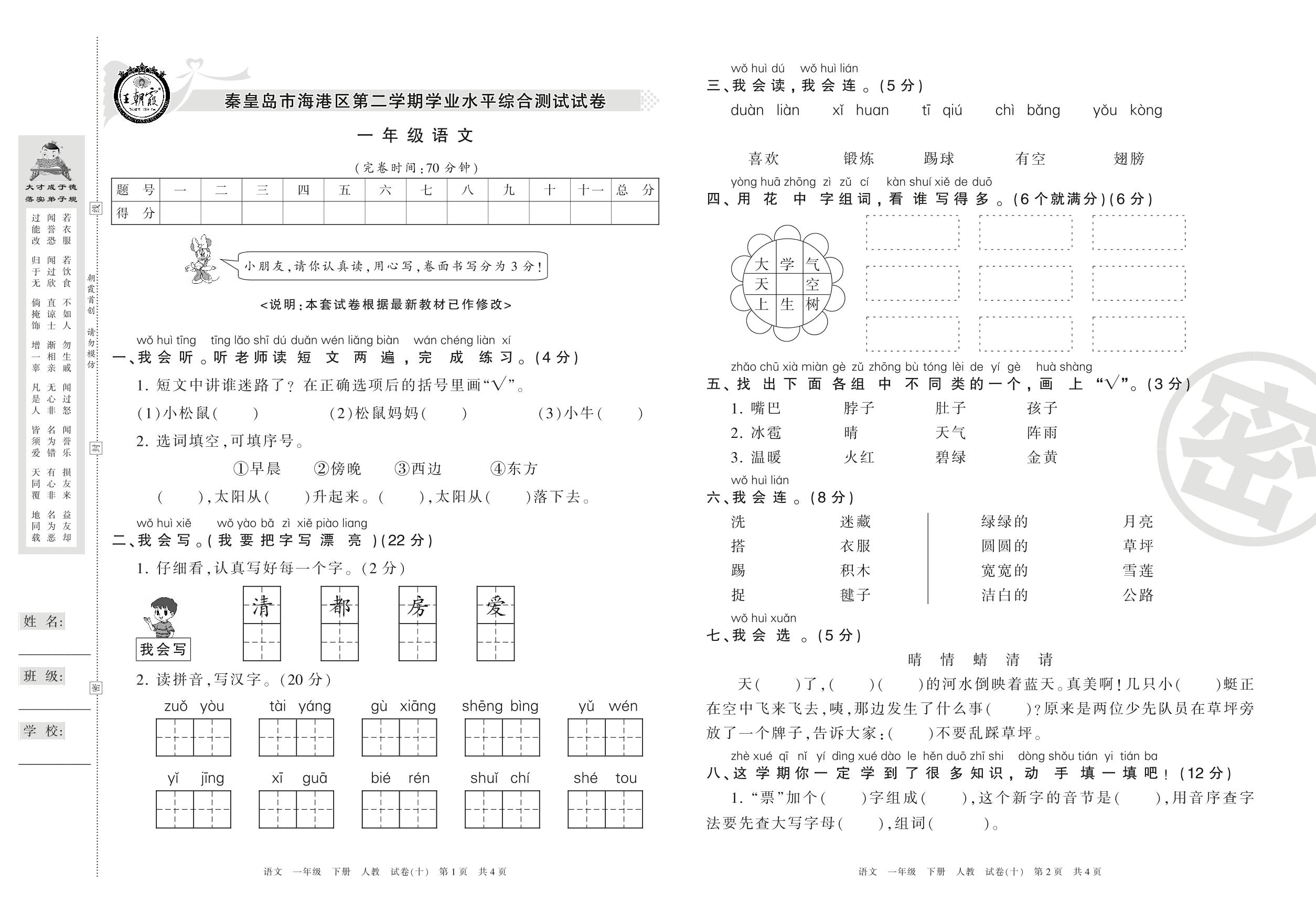 2015-2016学年第二学期秦皇岛市海港区一年级语文试卷(人教版)【10】