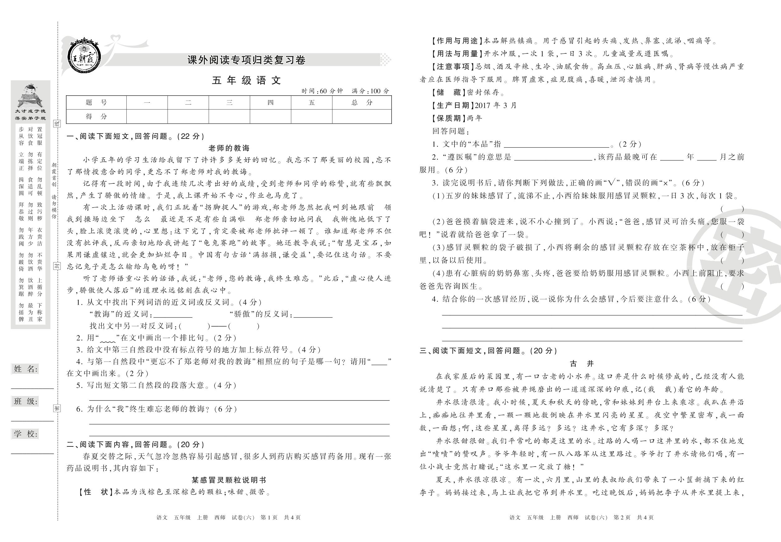 王朝霞期末专项卷五年级上册语文(西师版)_R210801221525【6】