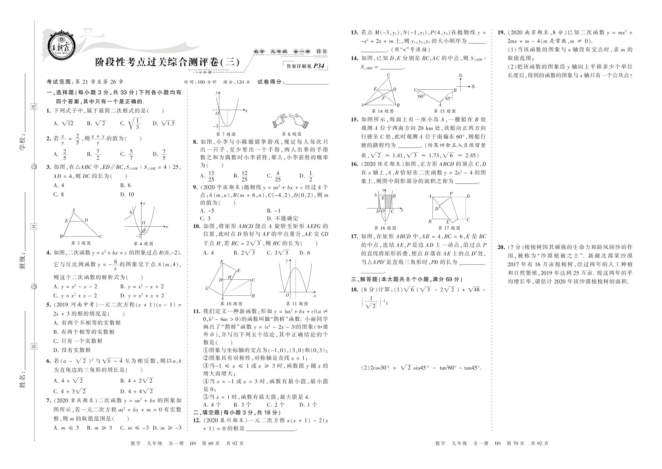 2021上册九年级数学华师版 阶段性考点过关综合测评卷(三)
