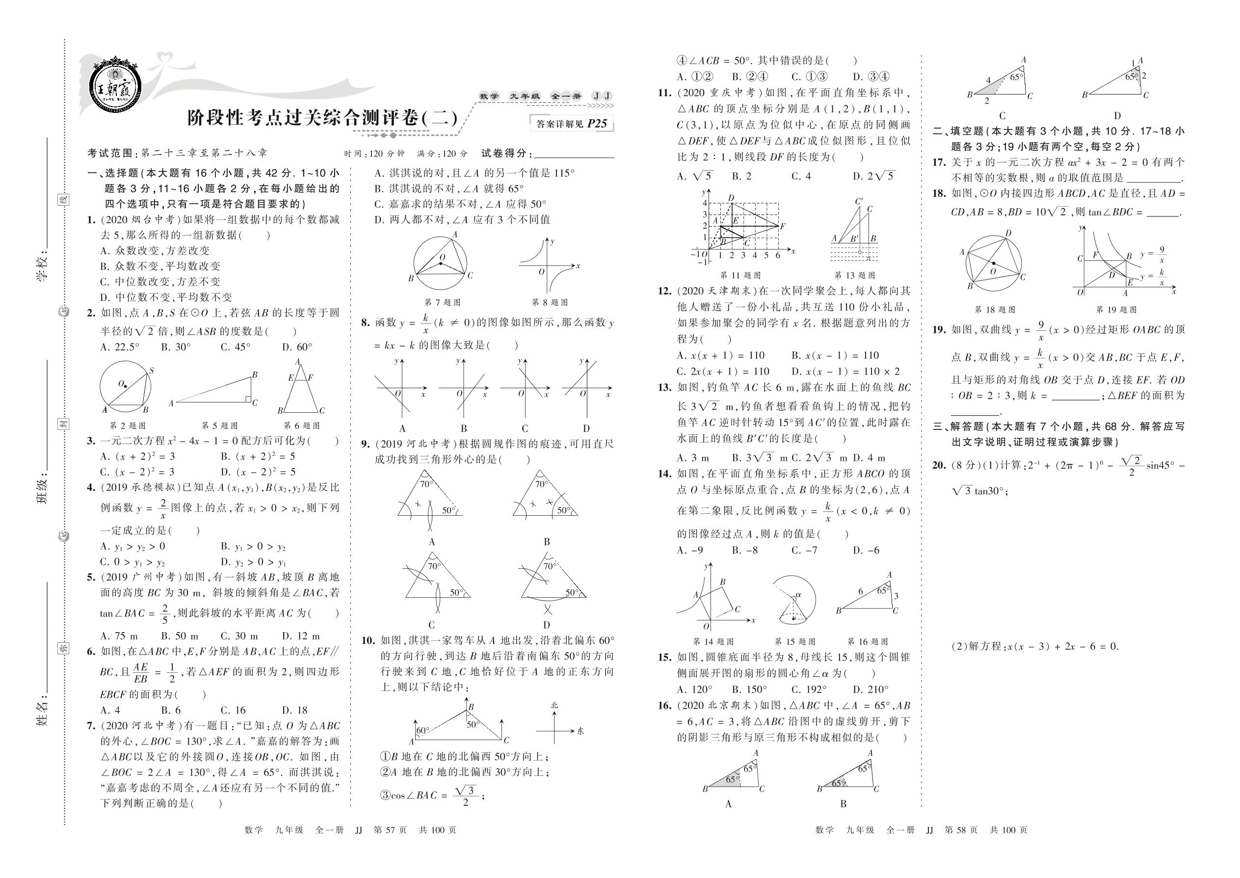 2021秋上册九年级数学冀教版 阶段性考点过关综合测评卷(二)