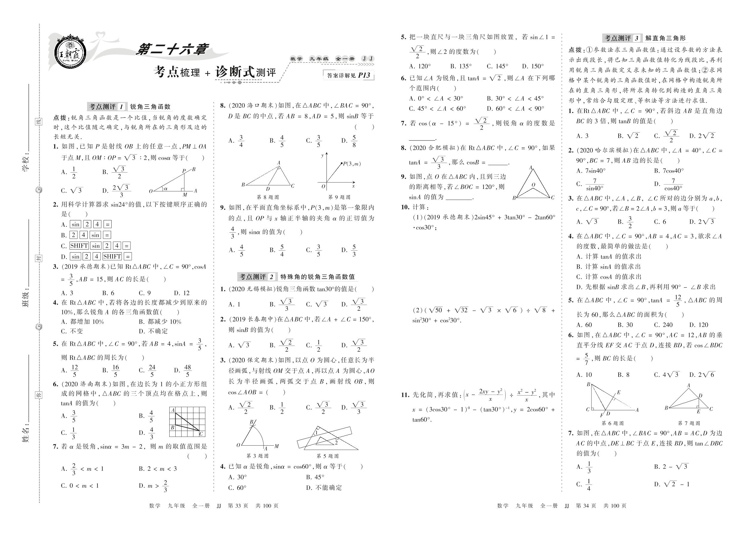 2021秋上册九年级数学冀教版 第二十六章 考点梳理 + 诊断式测评
