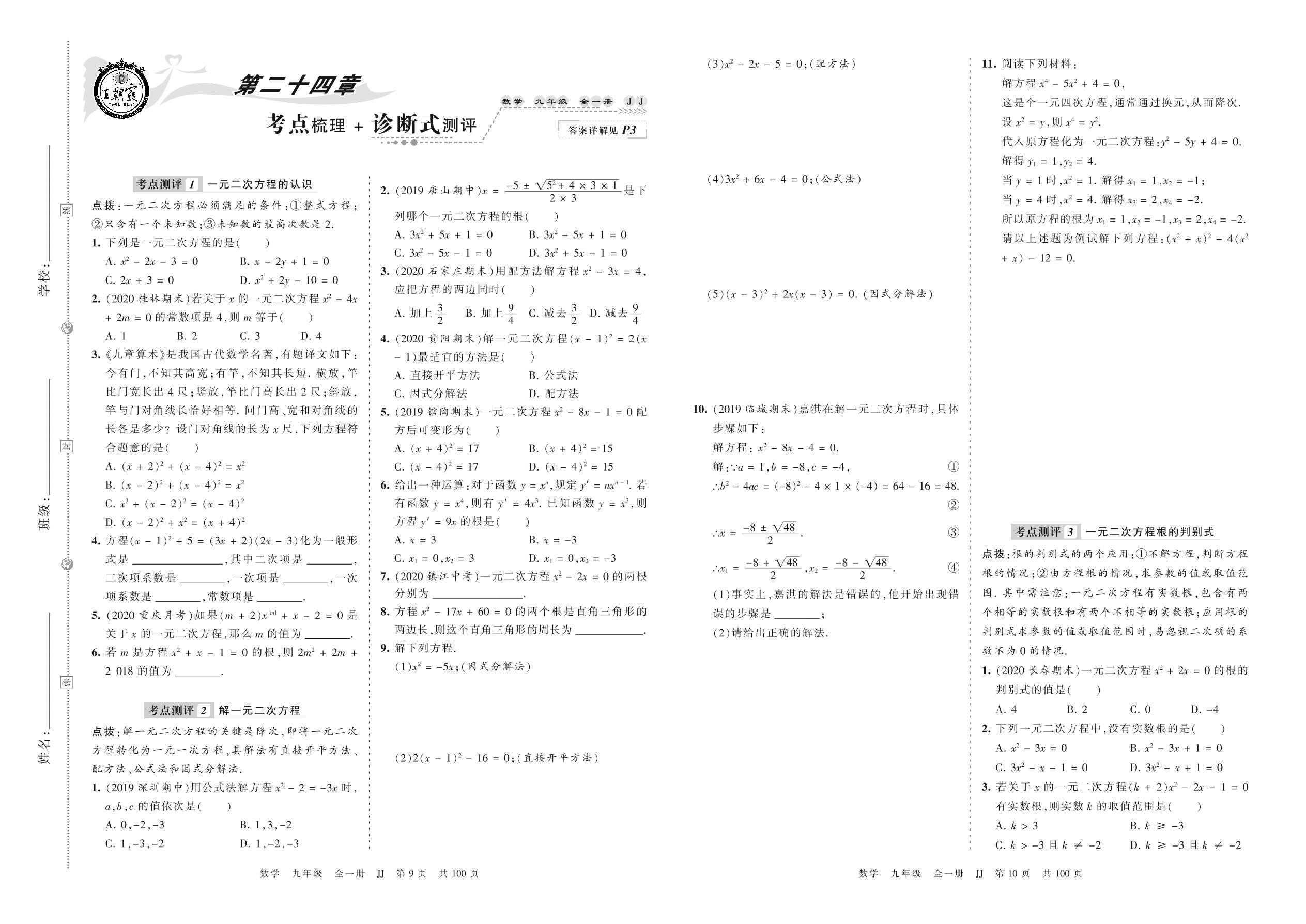 九年级数学冀教版上册单元卷