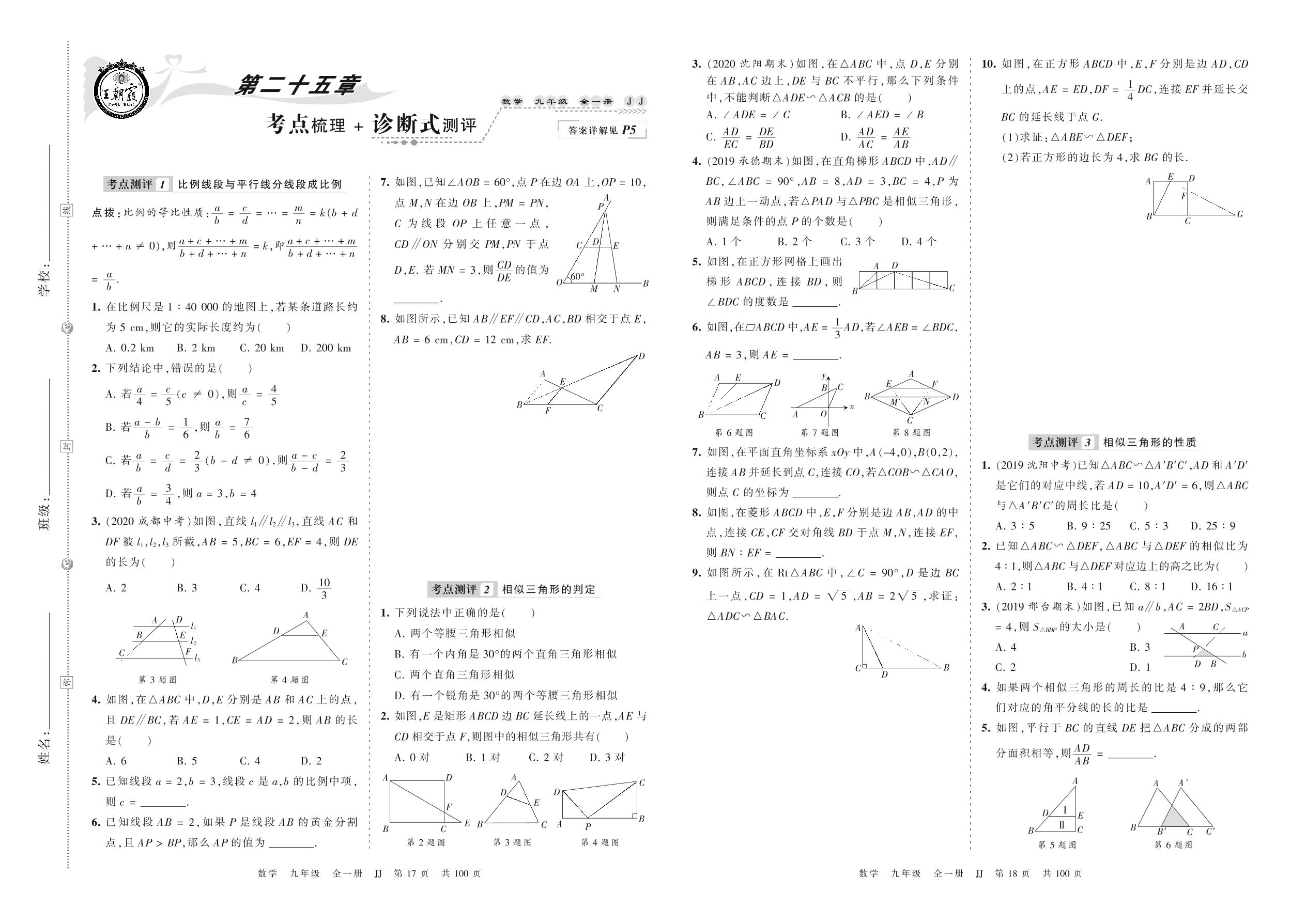 2021秋上册九年级数学冀教版 第二十五章 考点梳理 + 诊断式测评