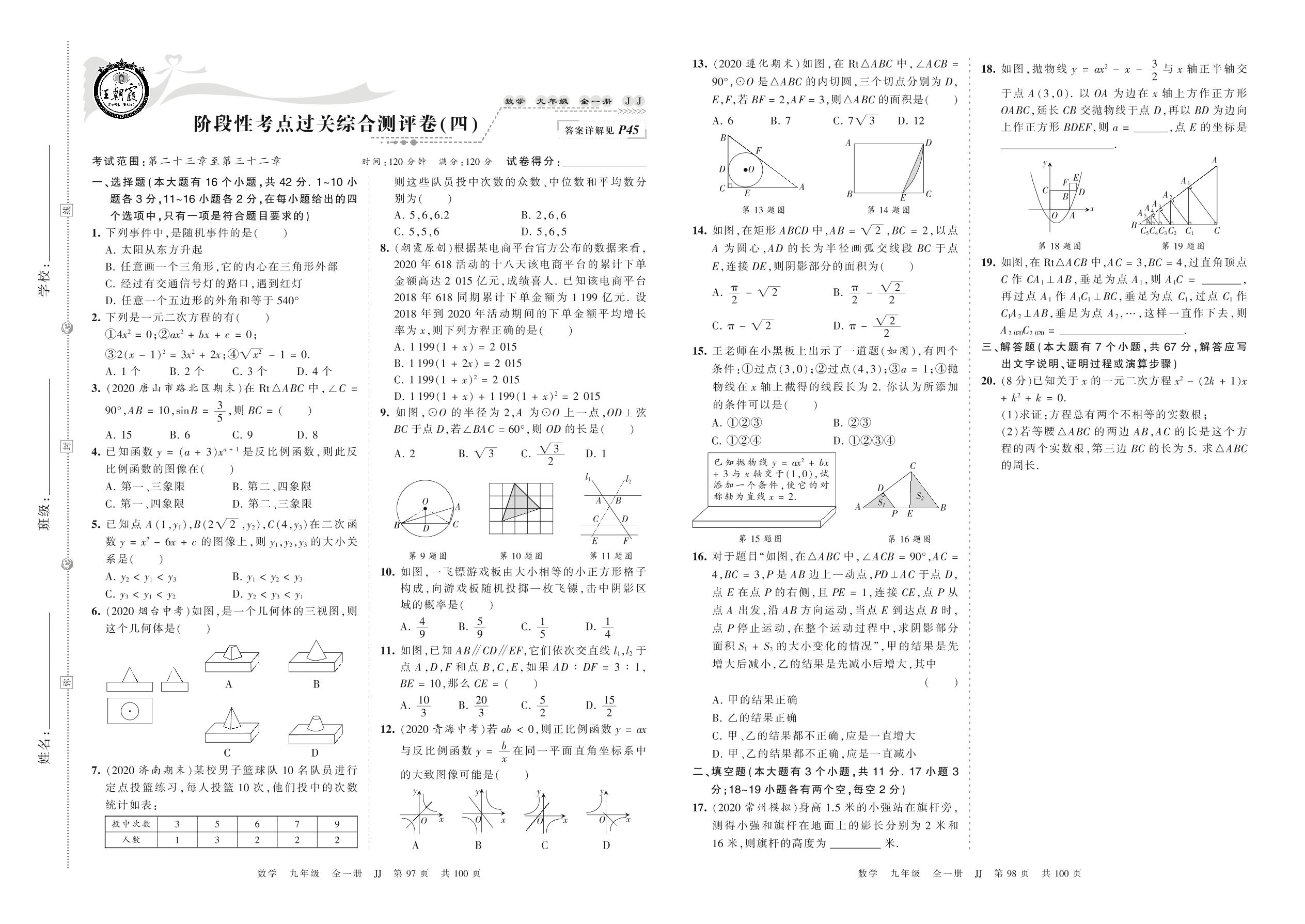 2022春下册九年级数学冀教版 阶段性考点过关综合测评卷(四)