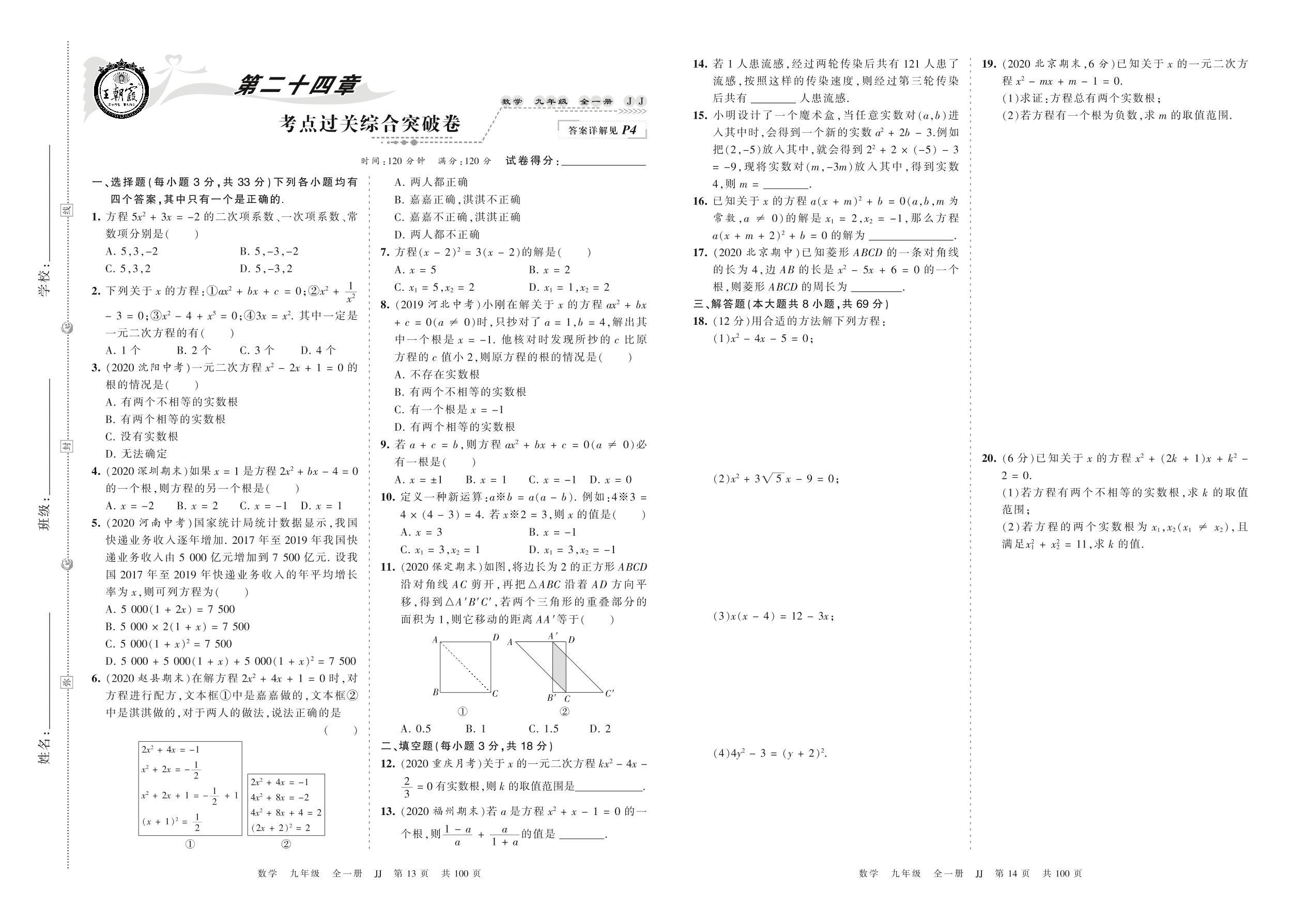 2021秋上册九年级数学冀教版 第二十四章 考点过关综合突破卷