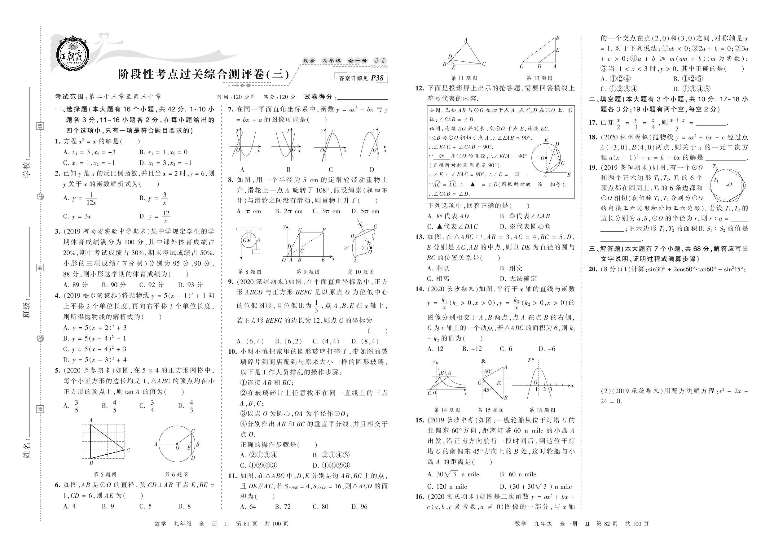 2022春下册九年级数学冀教版 阶段性考点过关综合测评卷(三)