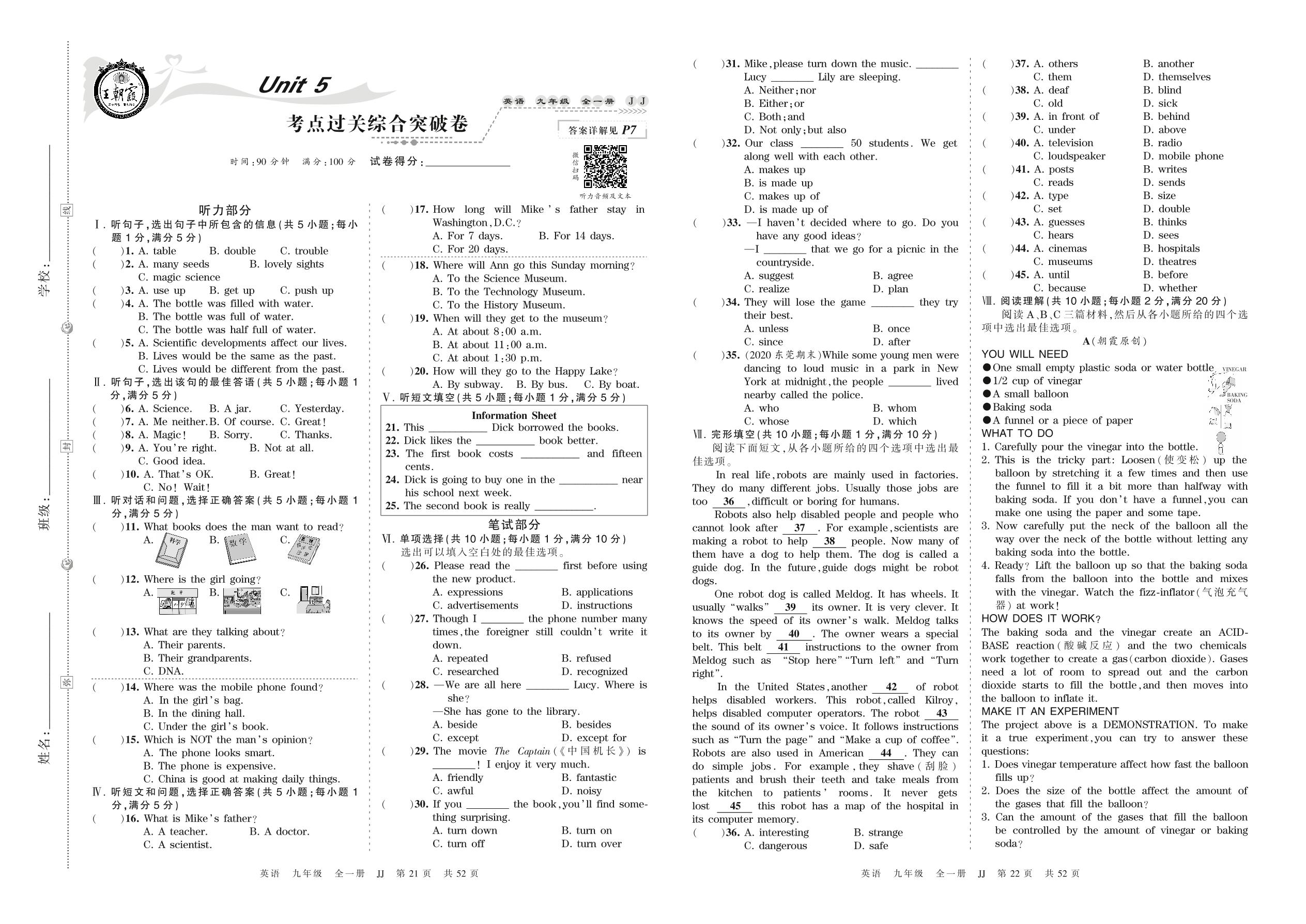 2021-2022学年九年级英语冀教版 Unit 5 考点过关综合突破卷