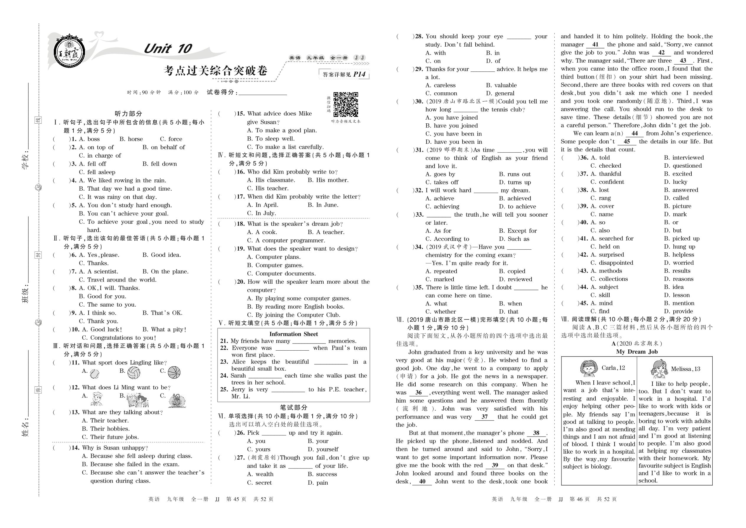 2021-2022学年九年级英语冀教版 Unit 10 考点过关综合突破卷