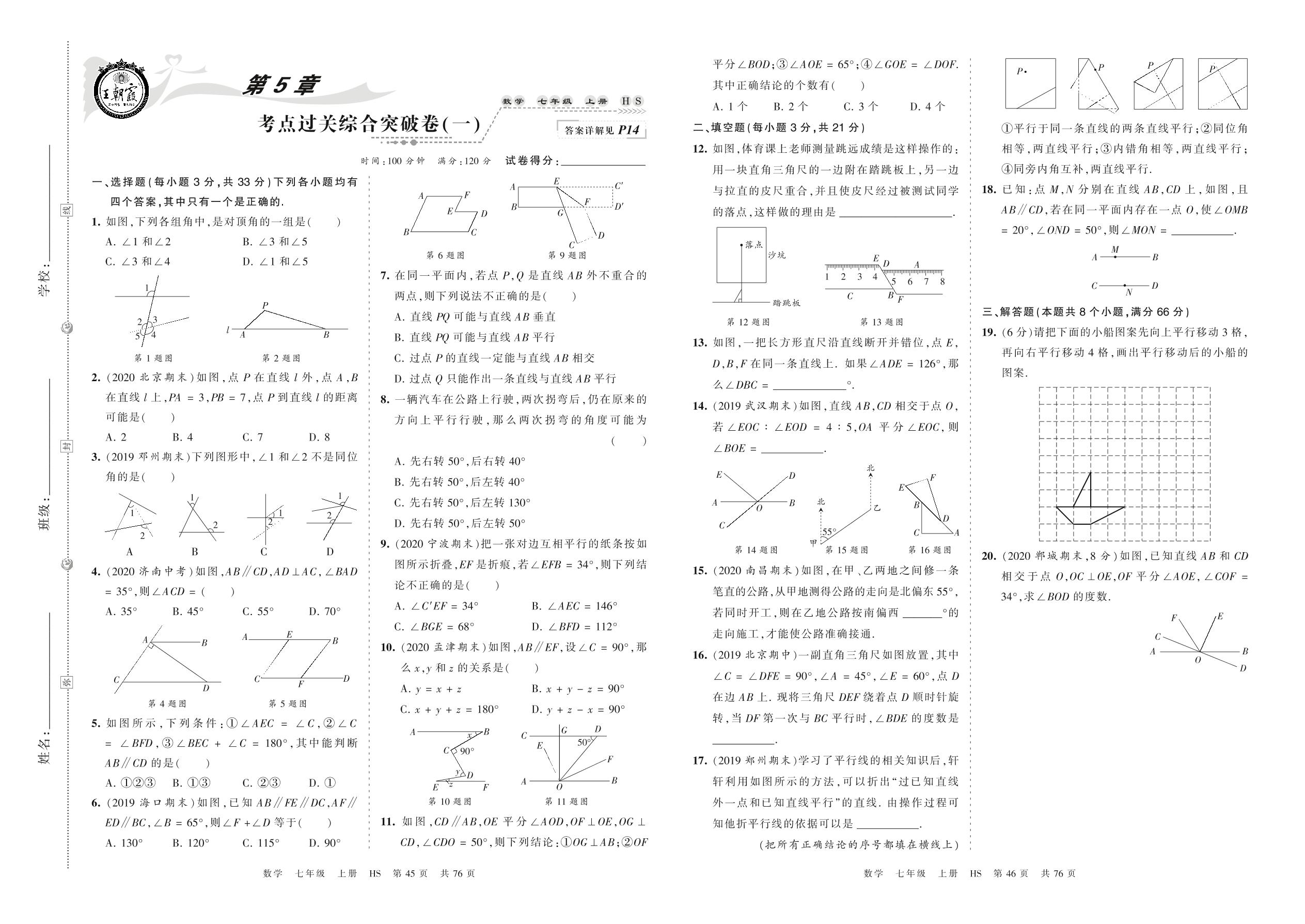 2021上册七年级数学华师版 第5章 考点过关综合突破卷(一)