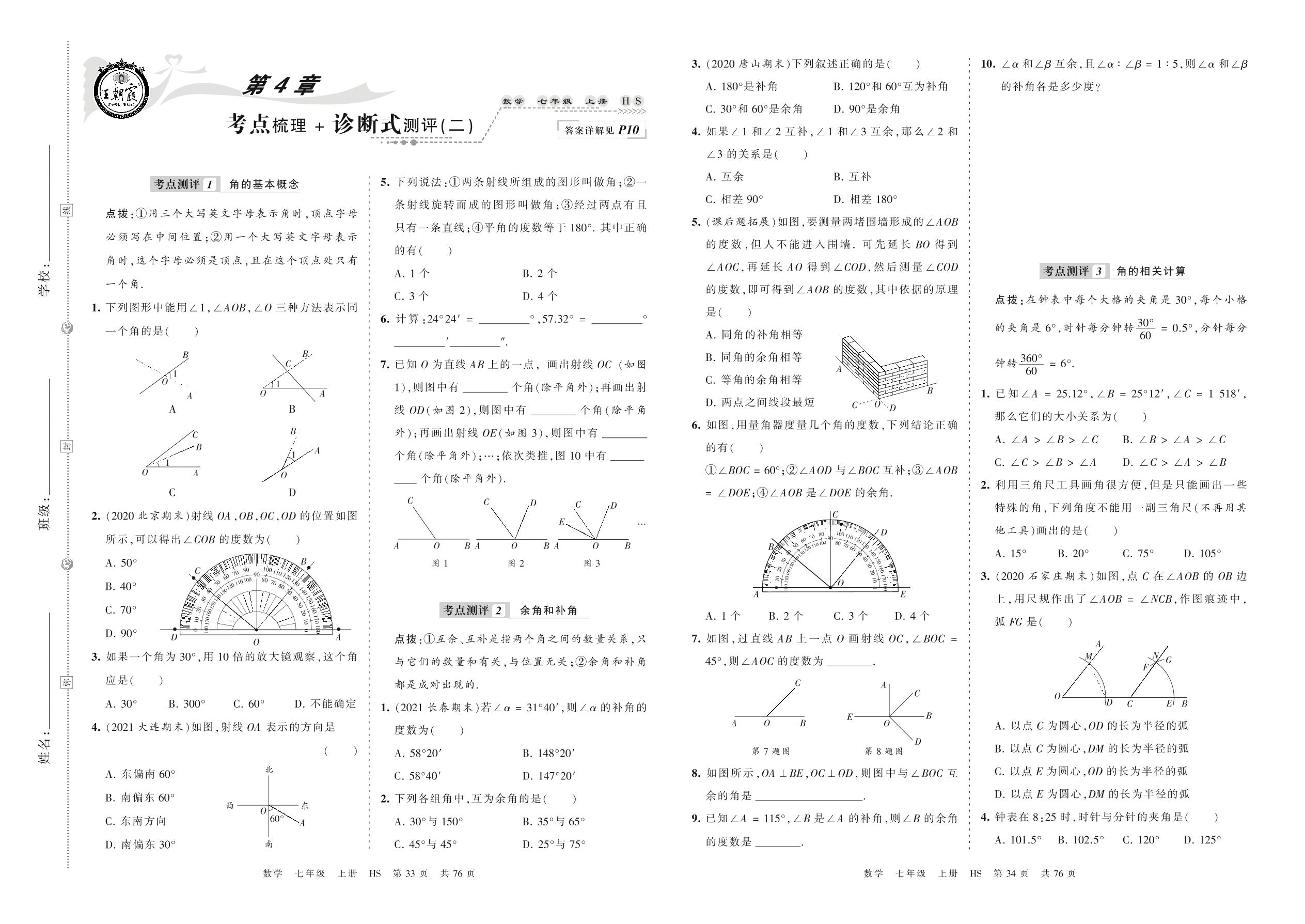 2021上册七年级数学华师版 第4章 考点梳理+诊断式测评(二)