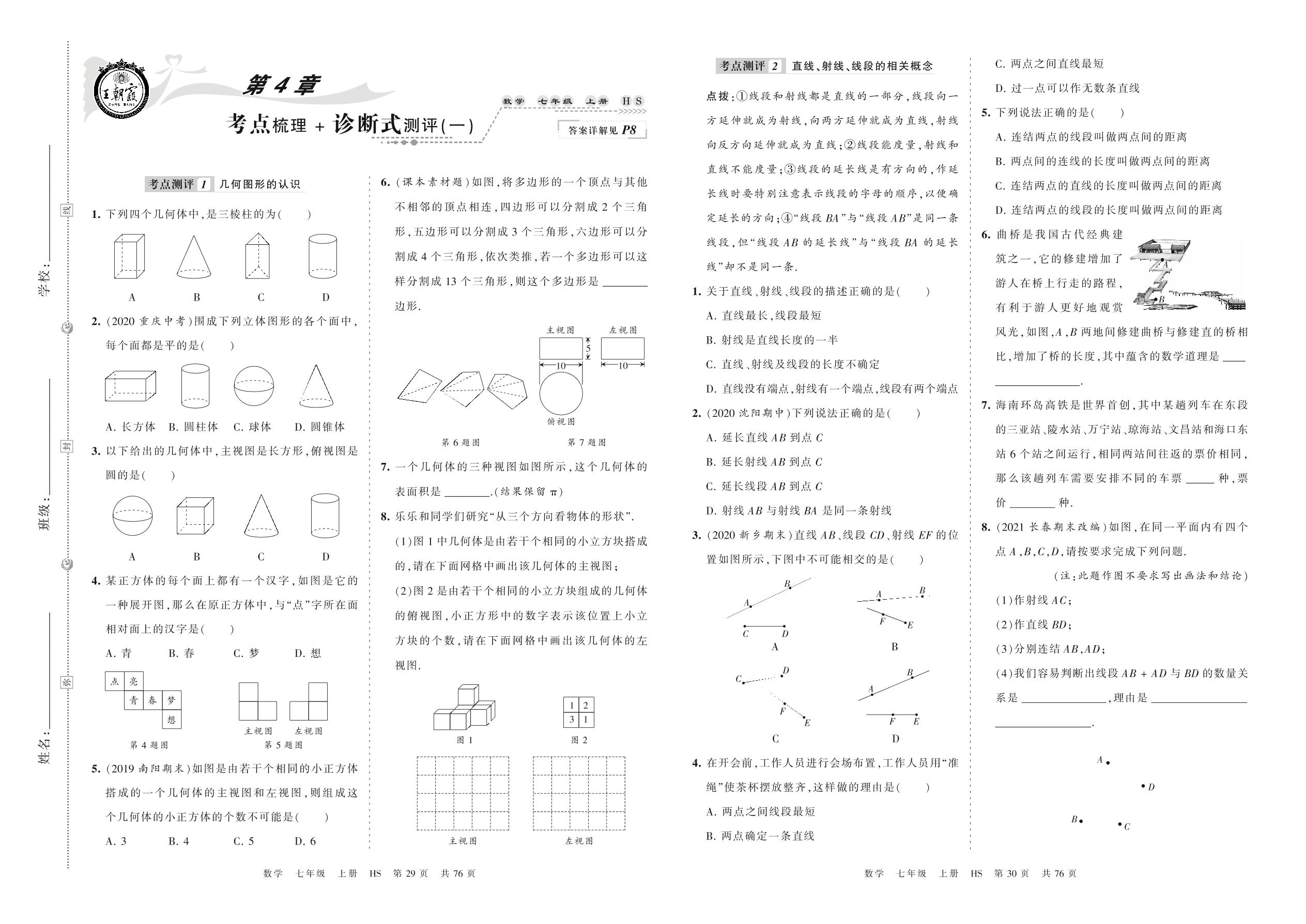 2021上册七年级数学华师版 第4章 考点梳理+诊断式测评(一)