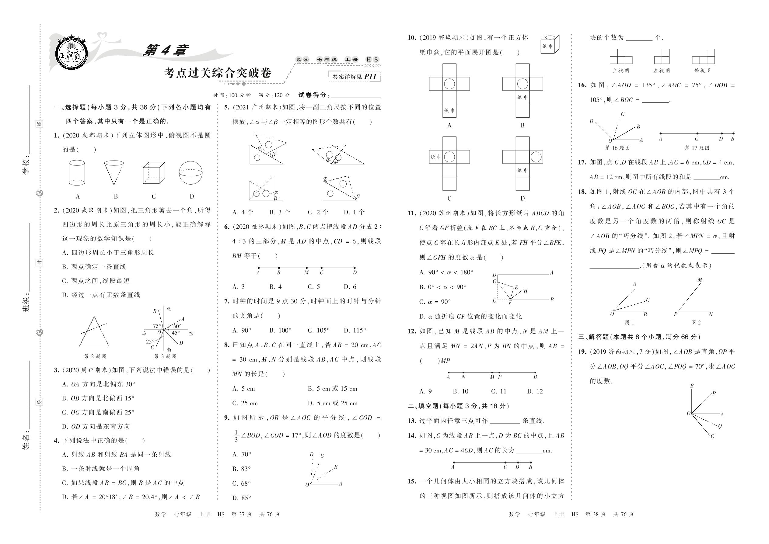 2021上册七年级数学华师版 第4章 考点过关综合突破卷