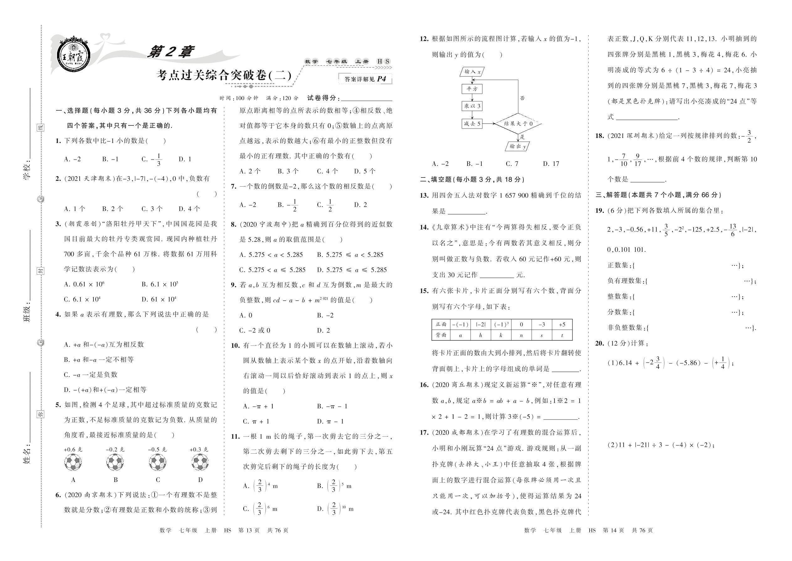 2021上册七年级数学华师版 第2章 考点过关综合突破卷(二)