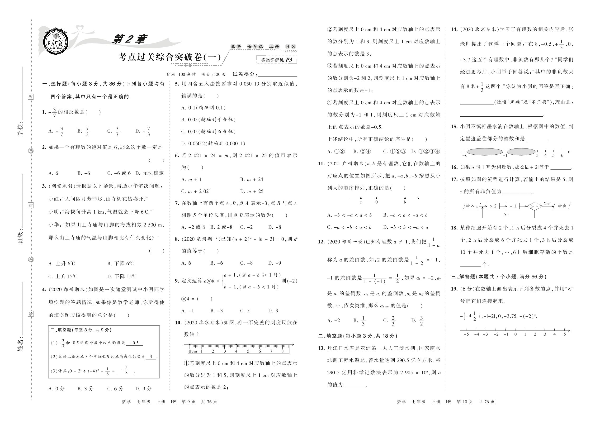 2021上册七年级数学华师版 第2章 考点过关综合突破卷(一)
