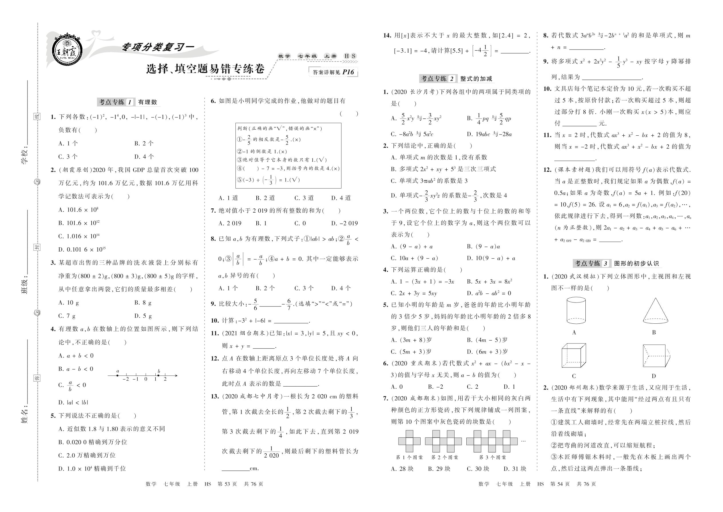 2021上册七年级数学华师版 选择、填空题易错专练卷
