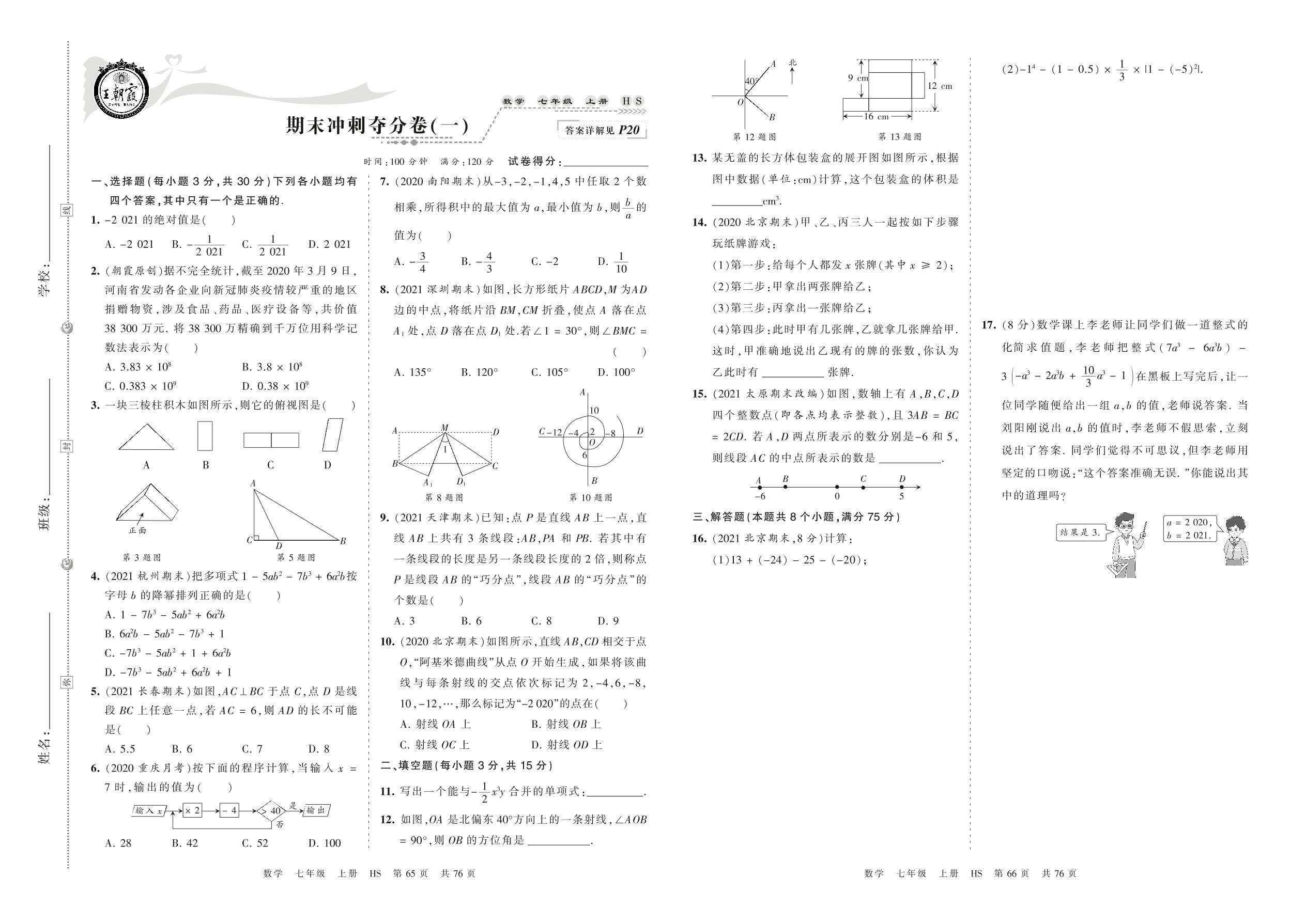 2021上册七年级数学华师版 期末冲刺夺分卷(一)