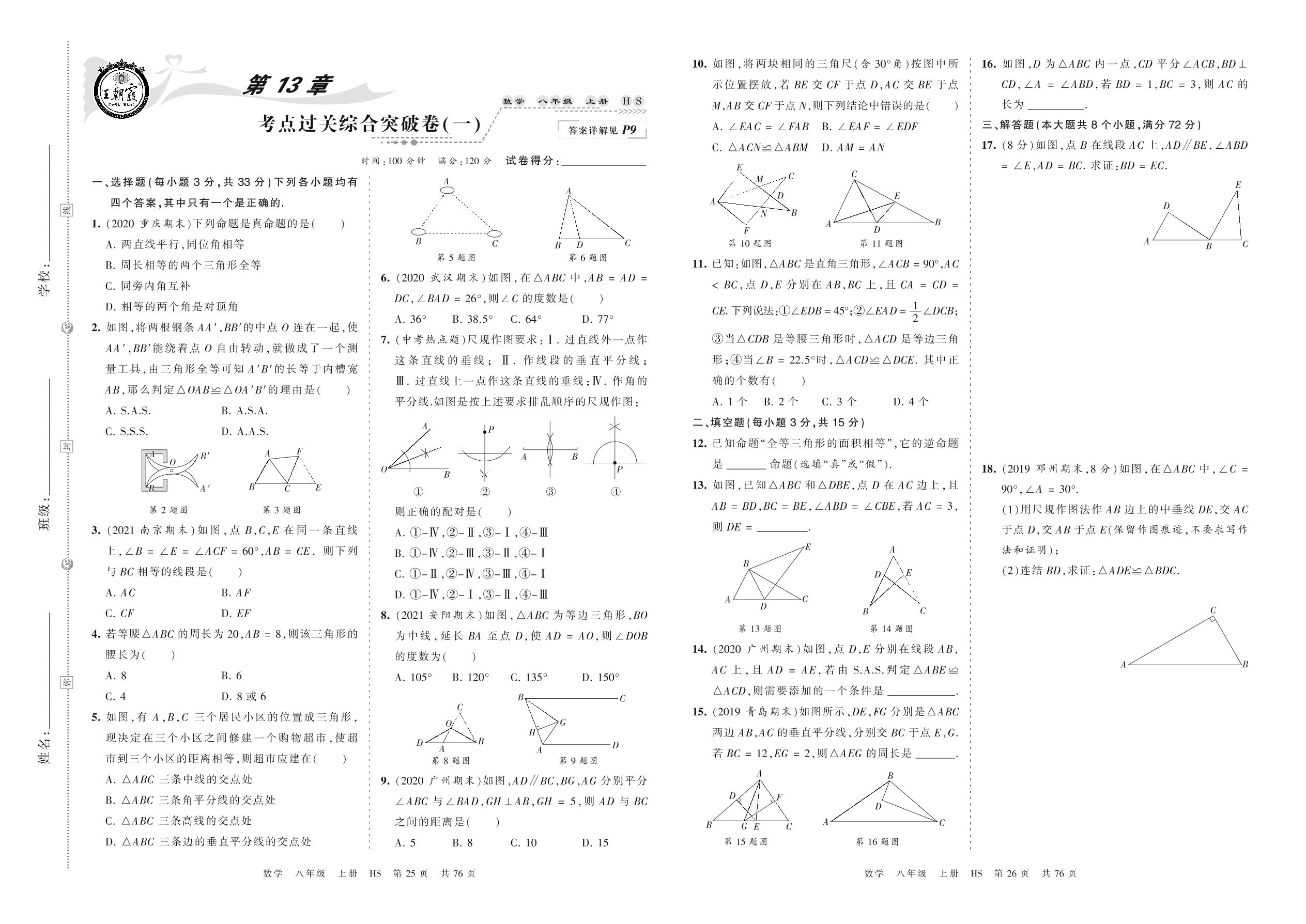 2021上册八年级数学华师版 第13章 考点过关综合突破卷(一)