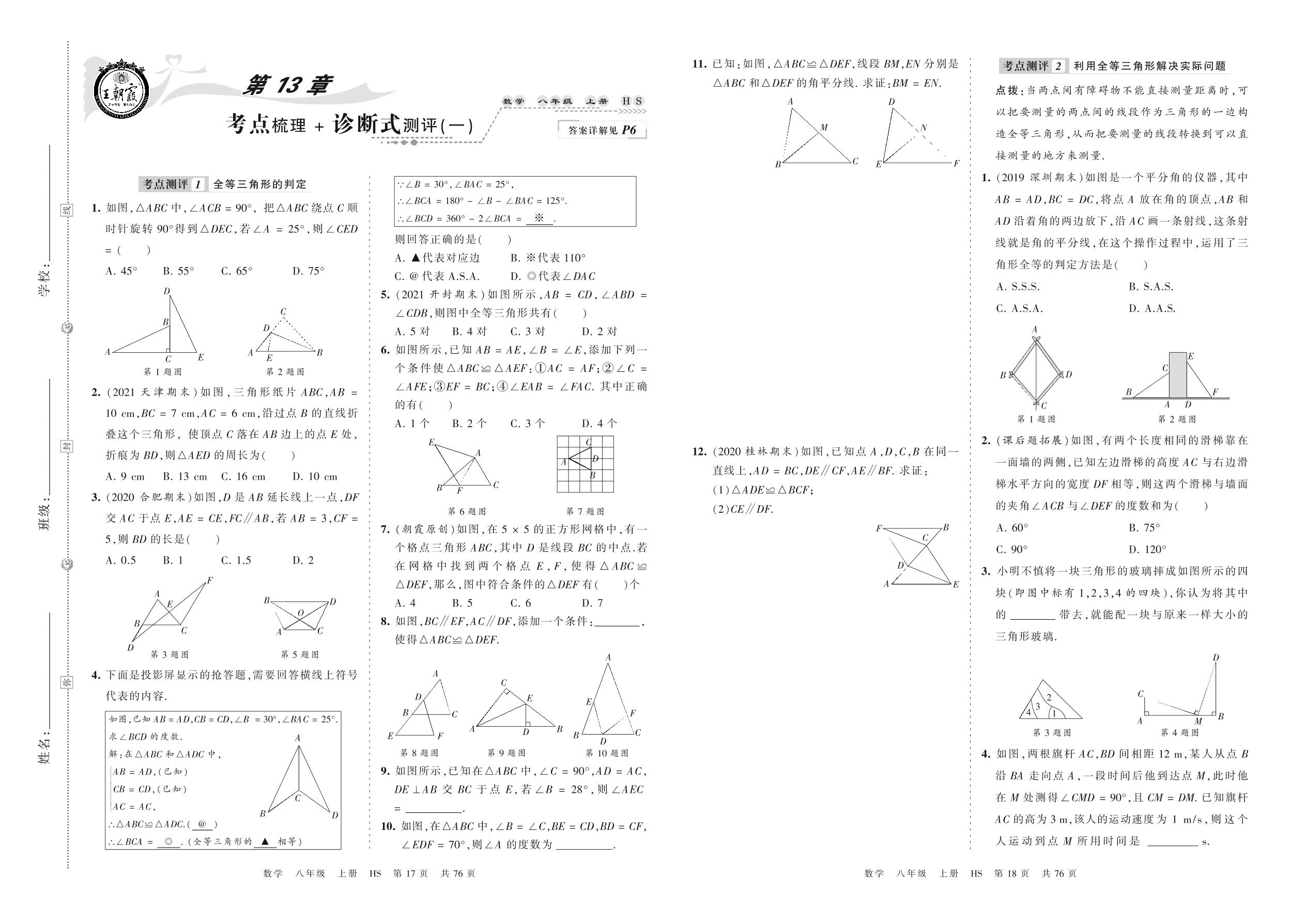 2021上册八年级数学华师版 第13章 考点梳理+诊断式测评(一)