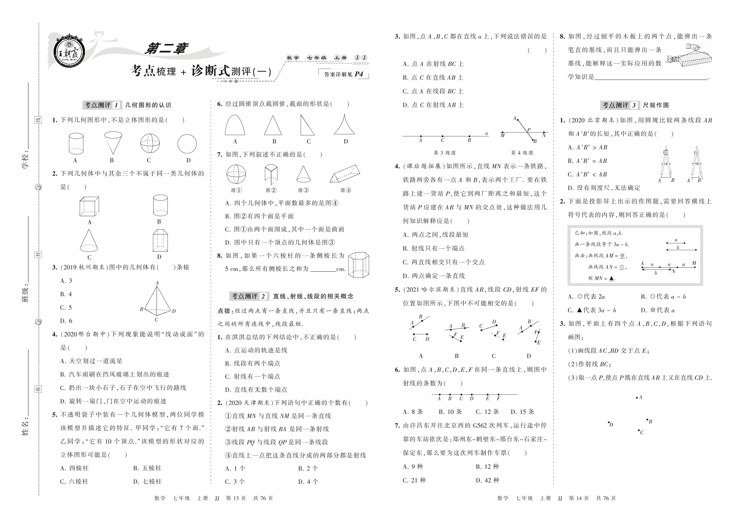 2021上册七年级数学冀教版 第二章 考点梳理+诊断式测评(一)